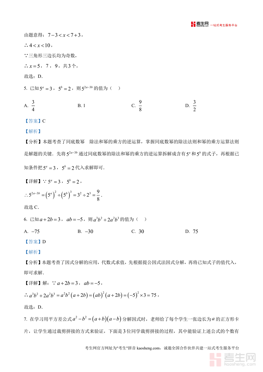 该资料核心用途为初二学生月考备考复习、自我检测与知识盲点排查,适用场景包括课后针对性训练、考前冲刺模拟、教师备课参考及家长辅导辅助。其用户价值在于通过真题解析帮助学生掌握月考高频考点(如三角形三边关系应用、平方差公式几何验证、完全平方式参数求解等),提升应试能力;备考优势体现在精准对接巴蜀中学教学进度与命题方向,并通过步骤化解析培养学生逻辑思维与解题技巧,有效缩短复习路径。