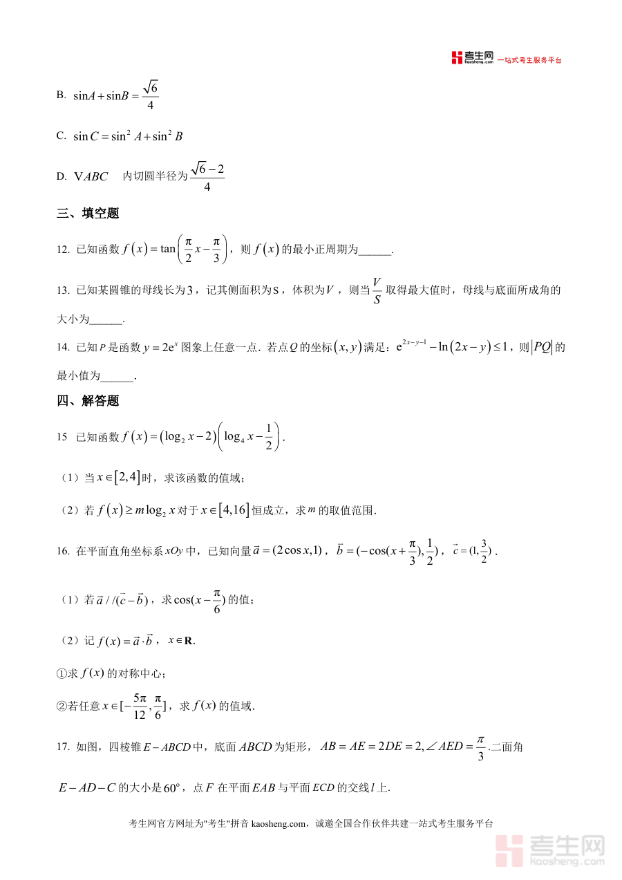 该试卷适用于江苏省常州市及周边地区高三学生、高中数学教师及高考备考辅导人员。作为六校教研联合体联合推出的阶段性调研资料,它是了解区域教研动态与命题趋势的必要工具——其命题团队专业背景与协同教研模式确保了试卷的权威性与针对性,具有不可替代性;从长期价值来看,该试卷可纳入高三备考真题库反复研习,持续助力学生巩固核心考点、优化解题技巧与应试策略水平。