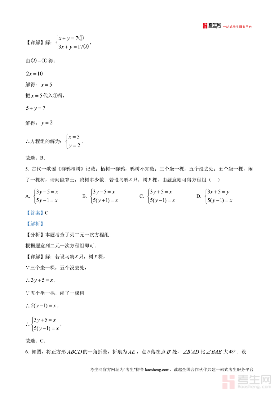 该资料核心用途在于辅助学生巩固课堂所学知识点、提升应试能力,使用场景包括课后针对性练习、单元复习强化及考前冲刺训练。用户通过研读解析可掌握名校真题出题规律与答题策略,避免常见误区——如在含参数二元一次方程组中学会消元法处理常数参数,在几何题中熟练运用勾股定理解决实际问题。备考优势体现在贴合一线教学进度与名校出题风格,能有效弥补知识漏洞,提升解题效率与准确性。