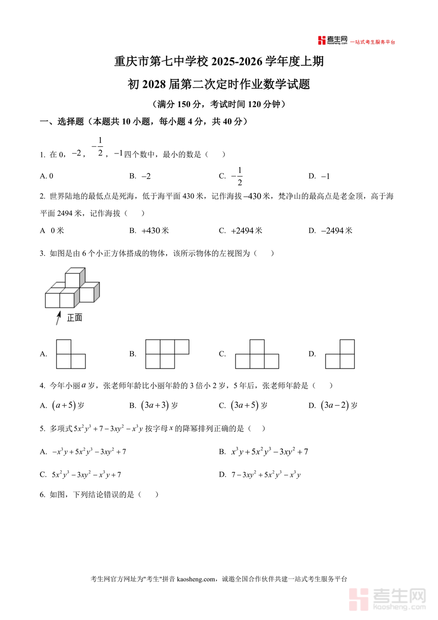 适用人群为重庆市第七中学初2028届八年级学生及使用人教版数学教材、同等学力阶段的八年级学生。作为阶段性定时作业试题原卷,它不仅是对前期学习内容的系统梳理与检验,更是衔接后续知识学习的重要桥梁。其不可替代性体现在紧密结合校本题型特色与区域教学要求,长期价值在于为学生积累真题训练经验、构建完整知识体系提供可靠素材支持,助力学生稳步提升数学成绩。