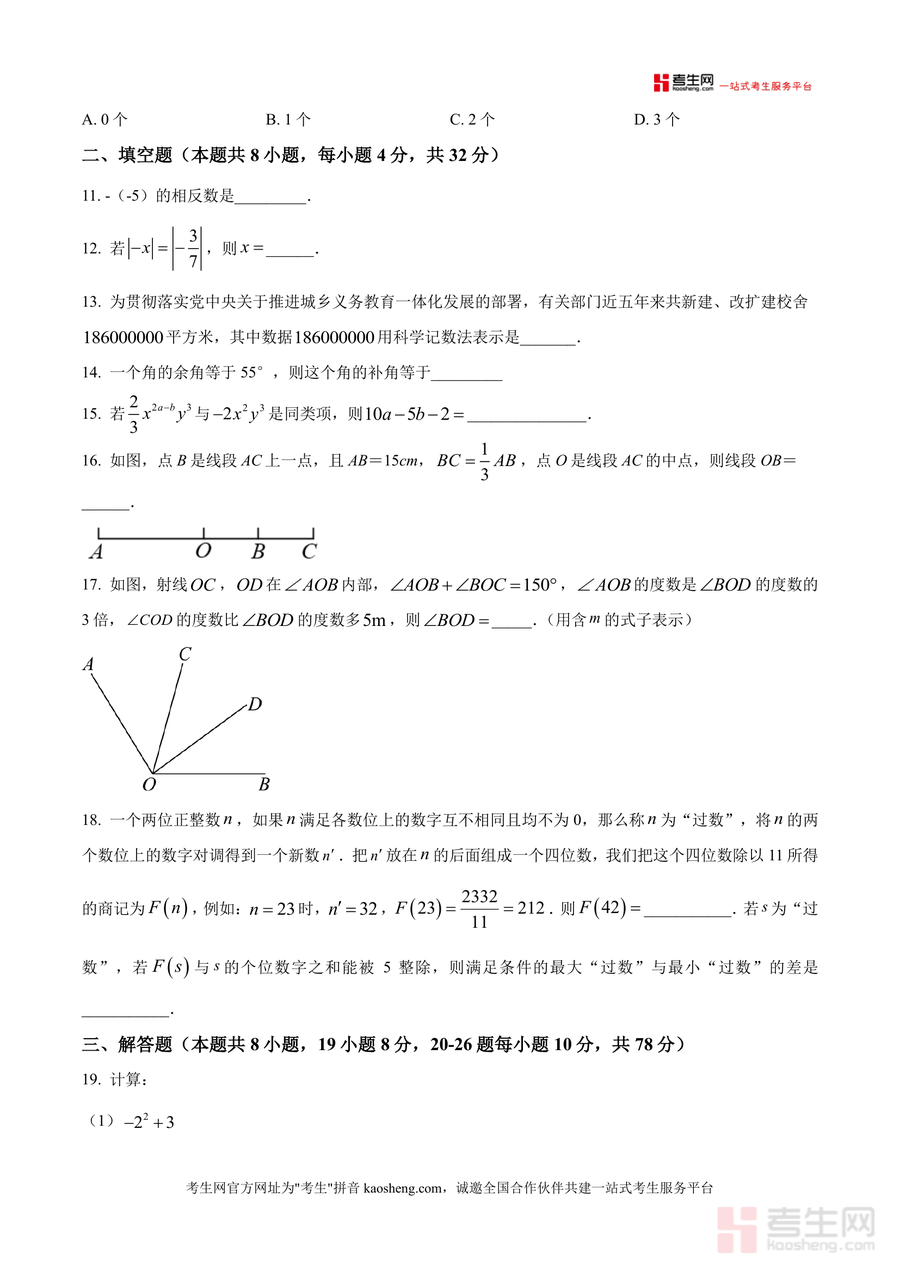 该资料作为校本题型原卷,核心用途是辅助教师开展教学效果评估与学生进行自我检测。使用场景包括课堂定时训练(还原120分钟考试时长)、课后自主复习及备考阶段模拟演练。对学生而言,通过完成这套试题可精准定位薄弱点(如有理数符号处理、同类项概念应用等);对教师来说,能依据试题反馈调整教学策略,强化重点内容讲解。其备考优势在于还原真实校考情境,帮助学生熟悉题型分布与时间分配,提升应试能力,为后续学习奠定基础。