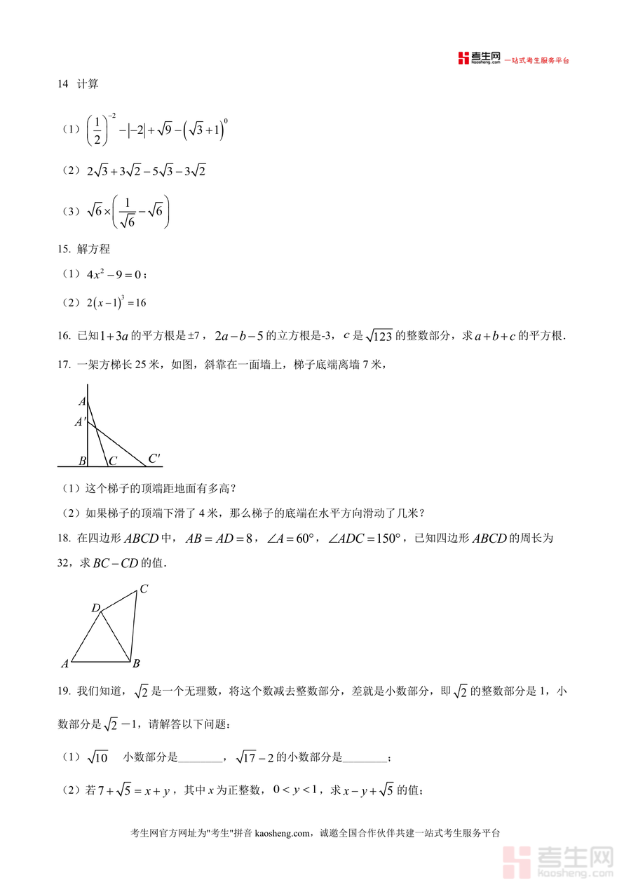 本资料适用于广东省深圳市龙岗区同心实验学校八年级学生、该区其他初中同年级学生及初中数学教师群体。对于学生而言,它是提前适应本校月考节奏、精准提升成绩必要工具;对于教师而言,是了解兄弟学校命题思路、优化教学方案重要参考。其不可替代性体现在与该校教学进度高度契合,且保留考试原题完整性与权威性;长期价值在于可作为八年级上册数学核心知识点(如勾股定理、二次根式)复习经典素材,助力学生构建扎实知识体系,为后续学习奠定基础。