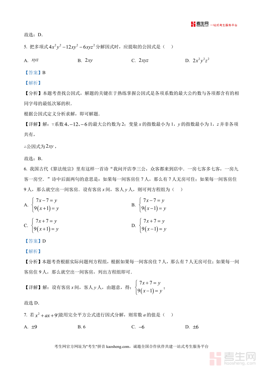 该资料核心用途在于巩固本周所学知识并提升应试能力,适用场景包括课后自主复习时核对答案、课堂讲评时参考详细解析、考前针对性训练时熟悉题型。用户价值体现在通过名校真题解析掌握同类题目的解题方法;备考优势在于精准匹配教学进度与考试难度要求,助力学生高效查缺补漏——例如通过解析中的“一题多解”思路拓展思维边界。