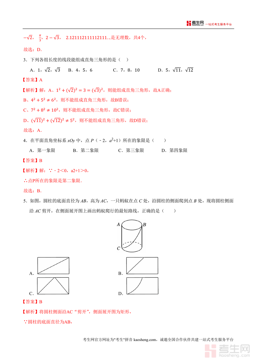 《广东省深圳市八年级数学上学期期中自编模拟卷(解析版)(新教材北师大版).docx》是一份针对深圳市八年级北师大版数学上册期中备考设计的高质量自编模拟资料。其内容严格遵循新教材北师大版八年级上册前四章考点范围,包含选择题(8题)、填空题(5题)及解答题(7题)三大题型,全面覆盖无理数判断与估算、勾股定理应用、平面直角坐标系坐标分析、一次函数图像与性质等核心知识点;特色亮点在于每道题均配备详尽解析,不仅给出答案,更融入解题思路(如蚂蚁最短路径的圆柱侧面展开法)、考点关联(如勾股树面积计算原理)及易错点提醒,助力学生理解本质而非机械记忆。