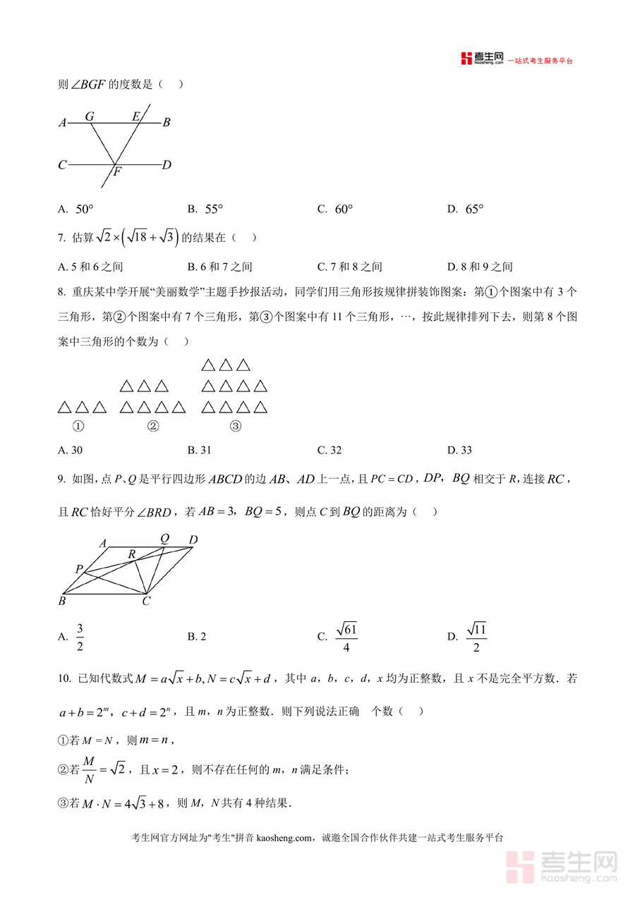 本资料适用于重庆育才中学初2027届八年级学生及同区域同类学校八年级学生。作为该校教共体自主作业原卷版资料,其贴合本校教学进度与命题特点的属性具有不可替代性;长期来看,通过该试卷训练能帮助学生夯实基础、培养逻辑解题思维,并为后续中考备考积累实战经验,助力学生在数学学科取得稳步提升。
