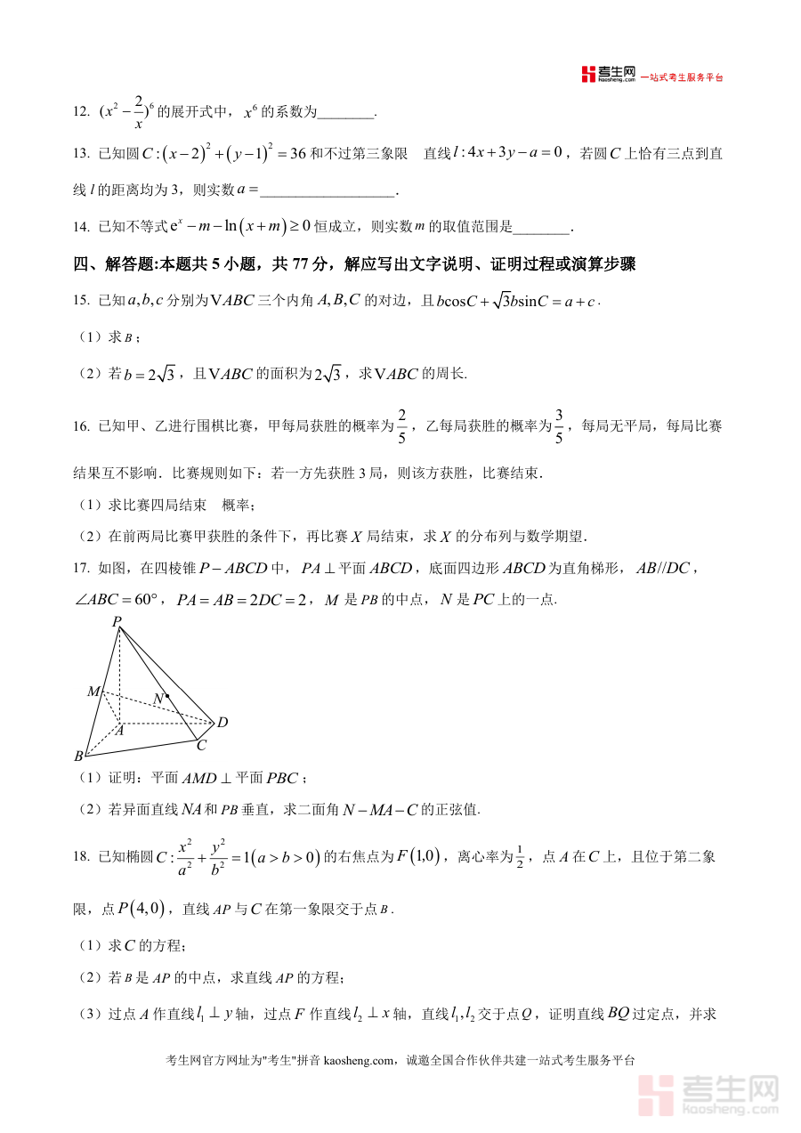 该资料核心用途在于帮助高三学生熟悉区域联考题型结构与难度系数,使用场景包括日常自主练习、班级模拟测试及考前针对性训练;用户价值体现在通过完成试题,学生可精准定位自身知识薄弱环节(如立体几何中二面角计算、概率统计中分布列求解);备考优势则是借助真实联考真题训练,能提升学生应试能力——包括解题速度、题型识别及答题规范意识,同时让学生提前适应联考命题风格,为后续高考复习明确方向。