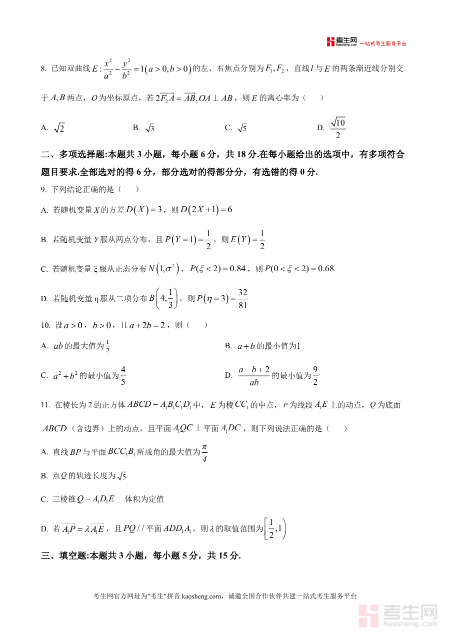 本资料适用于东莞市及周边地区高三学生、高中数学教师及高考备考辅导机构。作为高三上学期关键节点的七校联考试题原卷版,它具有不可替代的必要性——能直观呈现区域内教学质量与学生水平对比;其长期价值在于为学生积累实战经验,助力构建系统数学知识体系,是高三阶段提升数学成绩的重要资源。