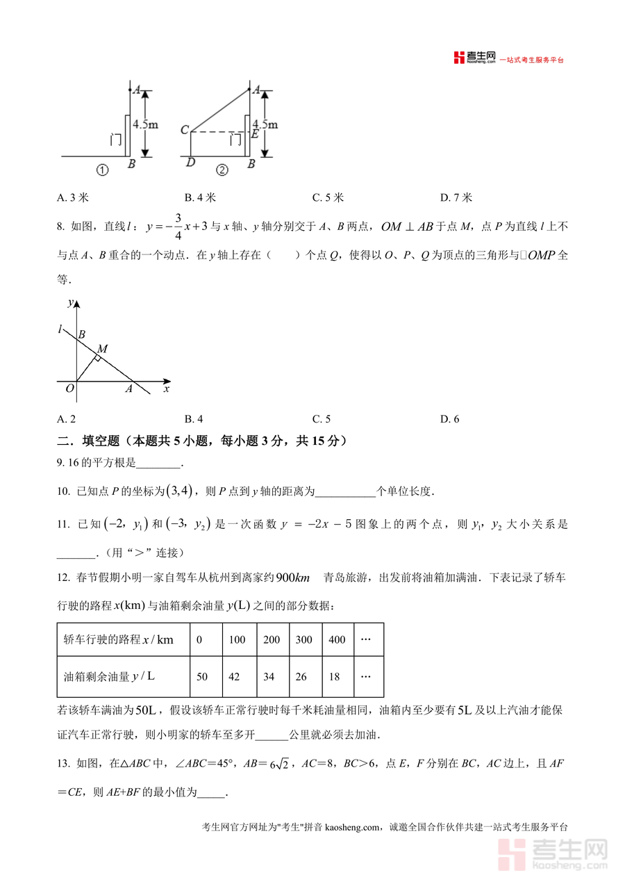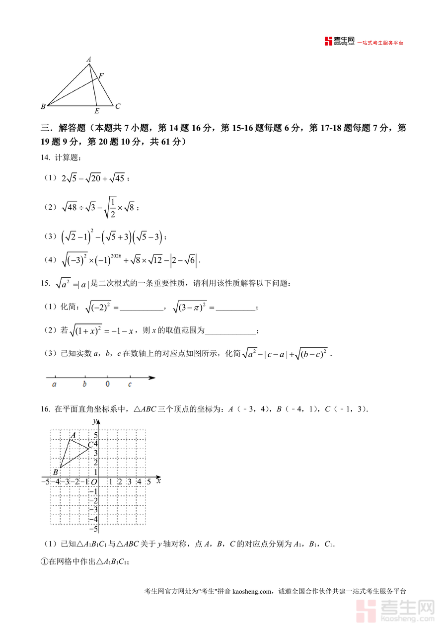 《精品解析:广东省深圳实验学校(中学部)2025-2026学年八年级上学期数学期中试卷(原卷版).docx》是一份聚焦深圳实验学校中学部八年级数学期中备考的权威真题资料。该资料包含完整原卷及精品解析两部分:原卷严格还原该校期中测试题型结构,涵盖选择题(8小题24分)、填空题(5小题15分)、解答题(7小题61分),涉及无理数识别、直角三角形判定、一次函数性质、平面直角坐标系应用等核心知识点;解析部分针对每道题的考点、解题思路及易错点进行详细梳理,并融入命题意图分析与技巧总结,助力学生深度理解知识应用逻辑。其特色在于贴合该校教学实际需求与命题风格偏好,内容精准匹配校内教学进度与能力要求。