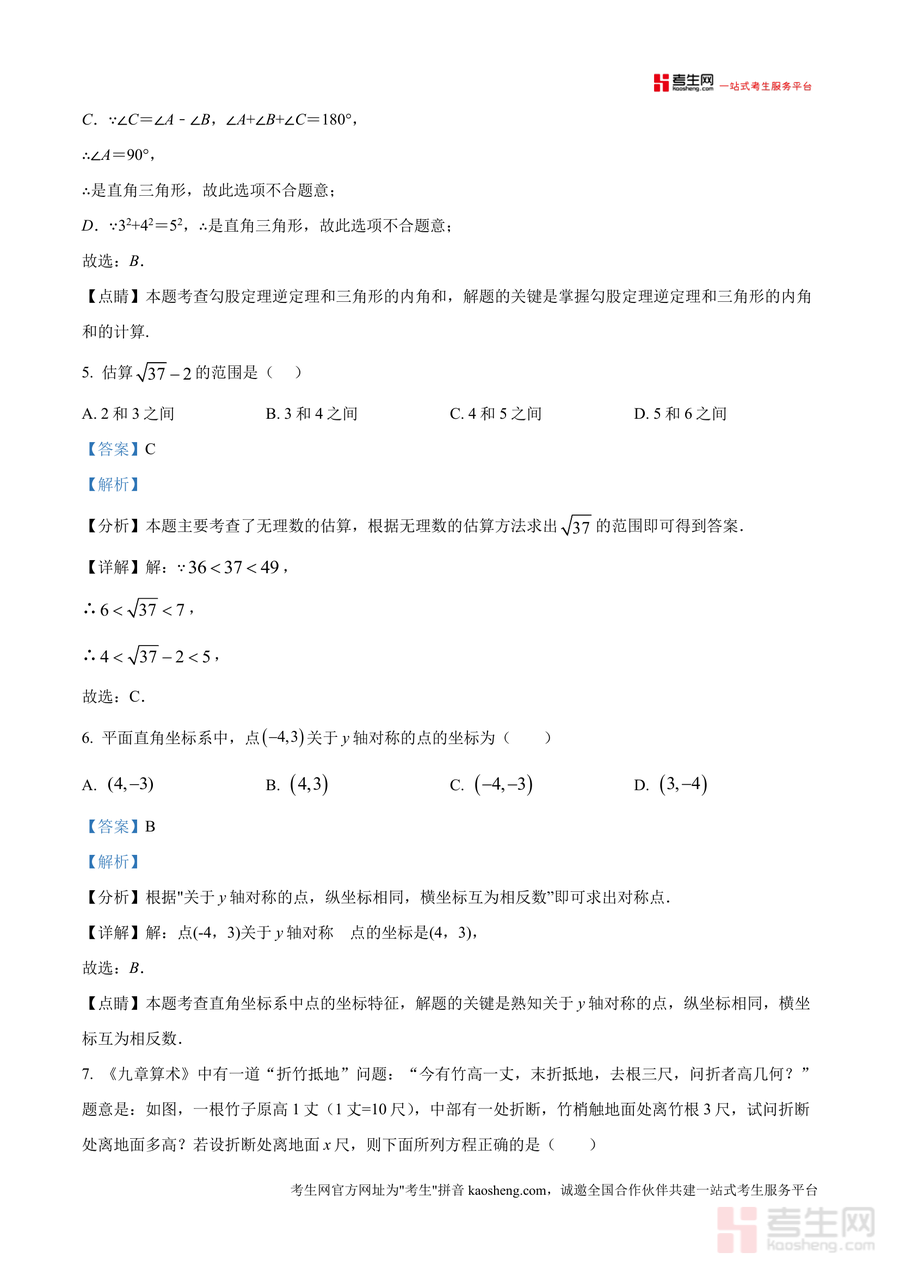 该资料核心用途是帮助学生精准定位知识薄弱环节,通过解析还原解题逻辑以提升应试能力。使用场景覆盖课后针对性复习(针对错题溯源补漏)、考前冲刺训练(熟悉该校命题规律)及教师教学参考(把握学生常见错误点)。用户价值体现在不仅给出正确答案更拆解思维路径——如二次根式运算题对比不同解法差异助学生优化思路。备考优势在于依托该校真实考试数据设计解析内容,能有效缩短学生从"会做"到"做对"的转化时间,强化对核心考点(如勾股定理、无理数估算)的掌握深度。