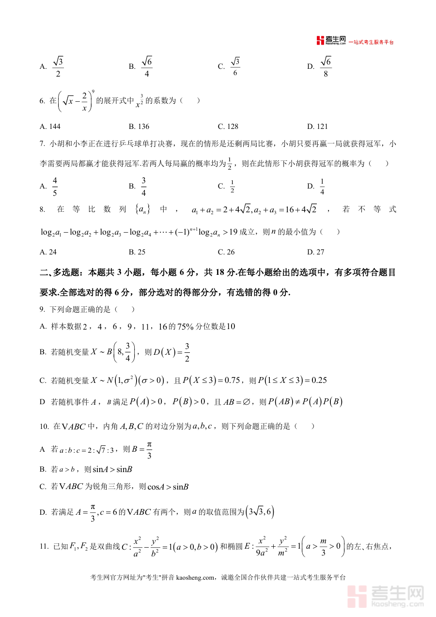 《精品解析:江西省宜春市十校协同体2025-2026学年高三上学期第一次联考数学试题(原卷版)》是一份针对高三一轮复习阶段的区域联考真题资料。该试题由滨江中学、丰城九中等十所宜春重点中学联合命题,严格遵循高考命题范围设置,重点考察解三角形、平面向量、复数、数列等核心模块,并滚动覆盖前期基础知识点。试题包含选择题(8小题)、多选题(3小题)、填空题(3小题)及解答题(5小题)四大题型,满分150分、考试时间120分钟的设置完全贴合高考标准,题型分布与难度梯度符合最新高考命题趋势,能真实反映区域高三学生当前知识掌握水平。