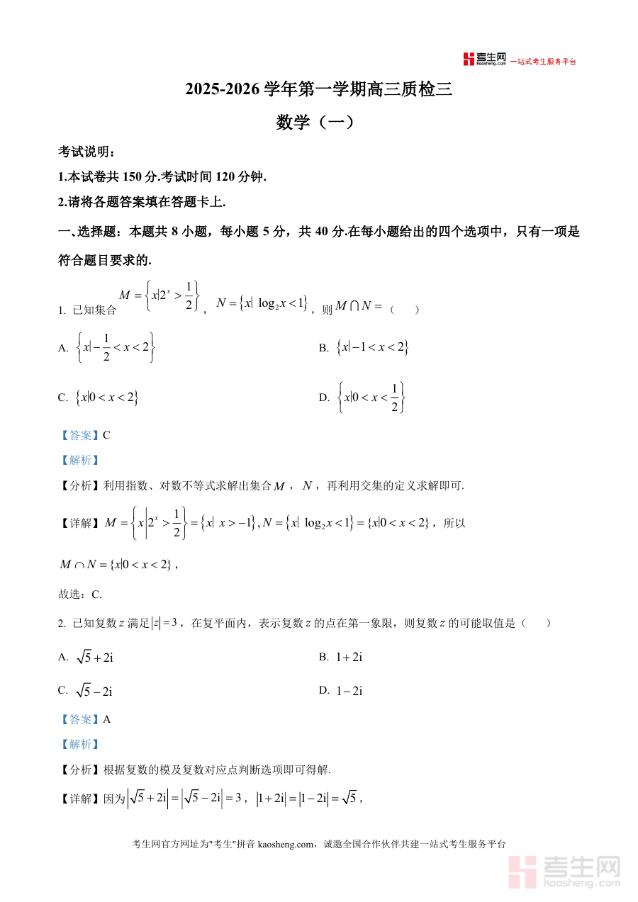 《精品解析:河北省NT20名校联合体(衡水市第十三中学等)2025-2026学年高三上学期质检三数学试题(一)(解析版)》是一份针对高三学生数学备考需求打造的权威真题解析类备考资料。文件包含全卷试题及详细解析内容,覆盖选择题、多选题、填空题及解答题四大题型,每道题目均配有精准答案与深度分析——如选择题中集合运算、复数性质等基础考点的分步解析,解答题中数列证明、立体几何线面关系及导数应用等综合题型的逻辑推导。其特色亮点在于结合河北名校联考命题趋势,融入考点溯源与解题技巧点拨,帮助学生快速把握核心知识模块与命题规律。