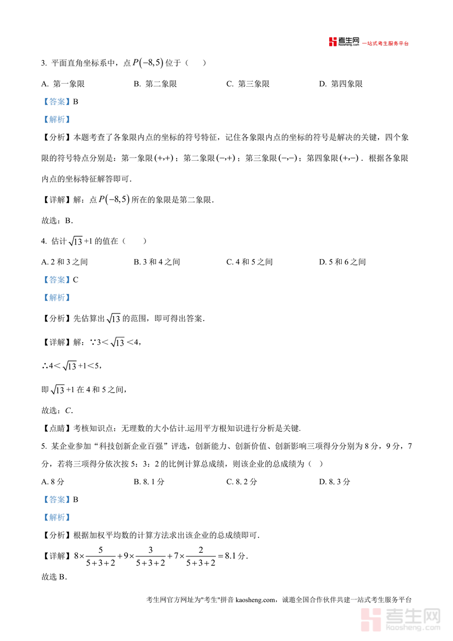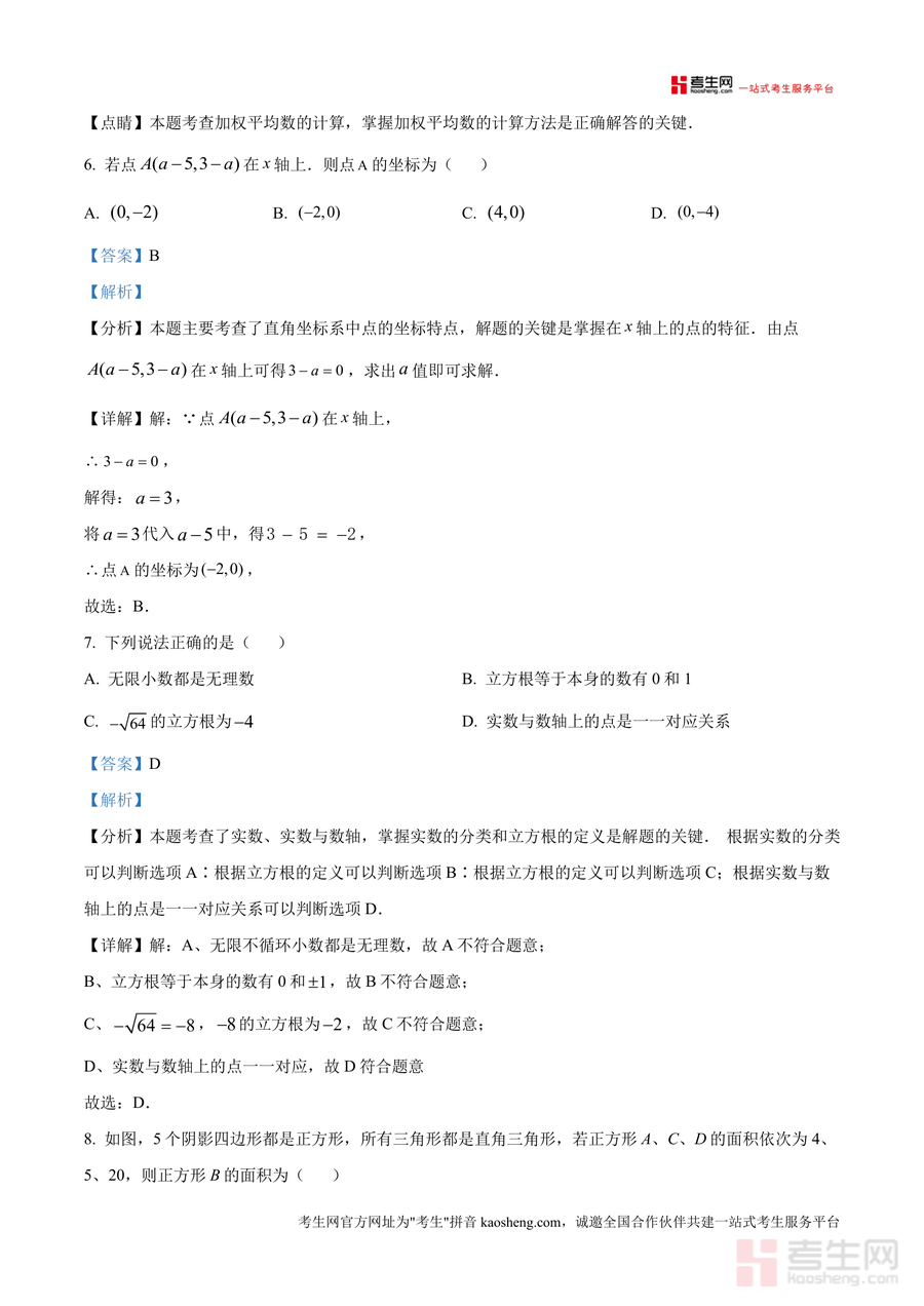 该资料核心用途在于辅助学生自查错题根源,巩固核心知识点(如二次根式运算、加权平均数计算、实数与数轴对应关系),教师可用于课堂针对性讲解或个性化辅导。使用场景包括学生课后自主复习、考前冲刺训练,其备考优势在于真题贴合该校教学进度与命题风格,解析详实能有效提升学生应试能力,让学生熟悉题型结构与得分要点,降低同类题目错误率。