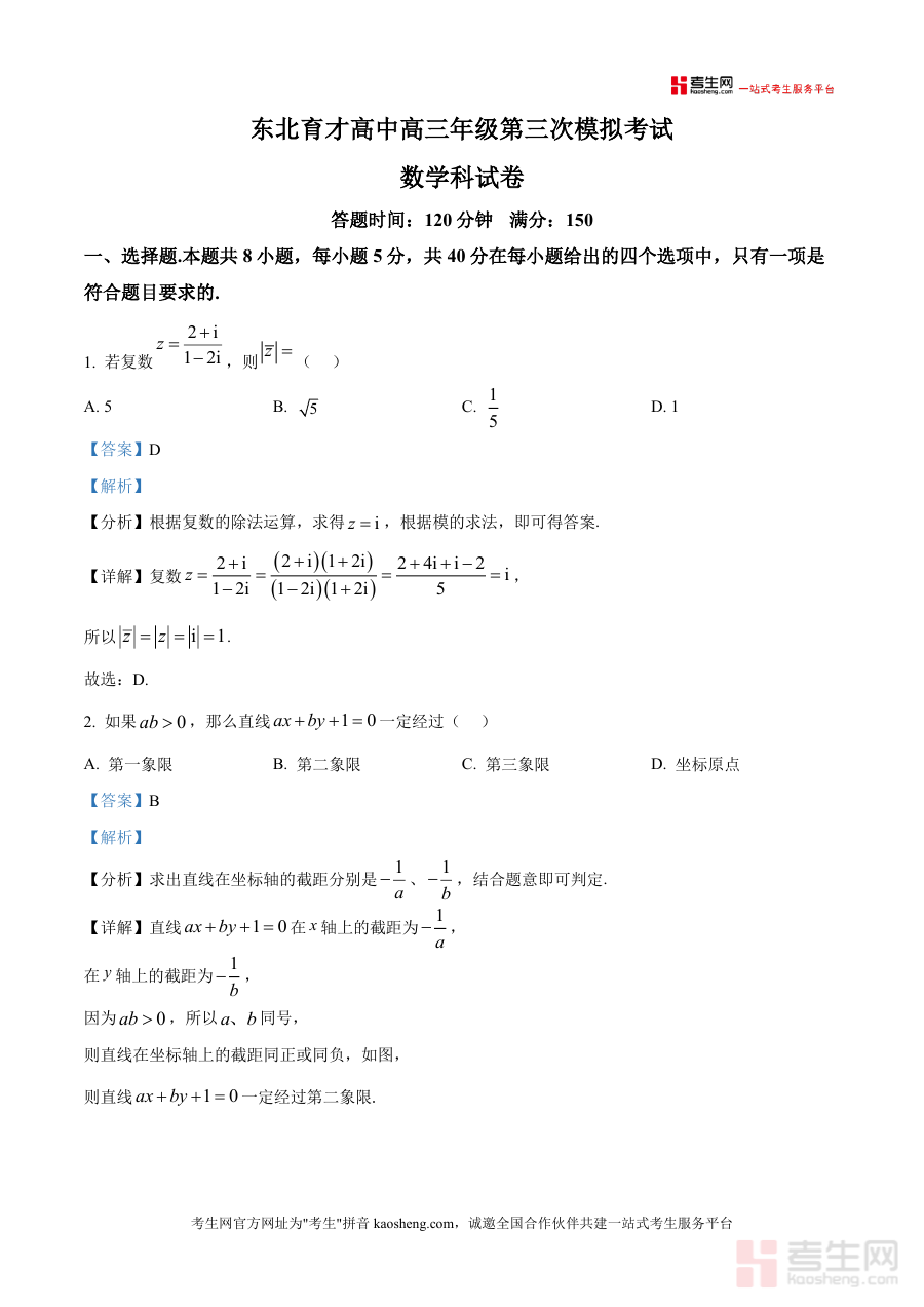 适用人群为辽宁省及全国目标冲击数学高分段高三学生、高中数学教师及备考辅导者。作为高考前重要模拟资料,必要性在于三模是复习成效关键检验;不可替代性体现在东北育才试题权威性与解析专业性;长期价值则培养逻辑思维与问题解决能力,对后续大学数学学习亦有积极影响。