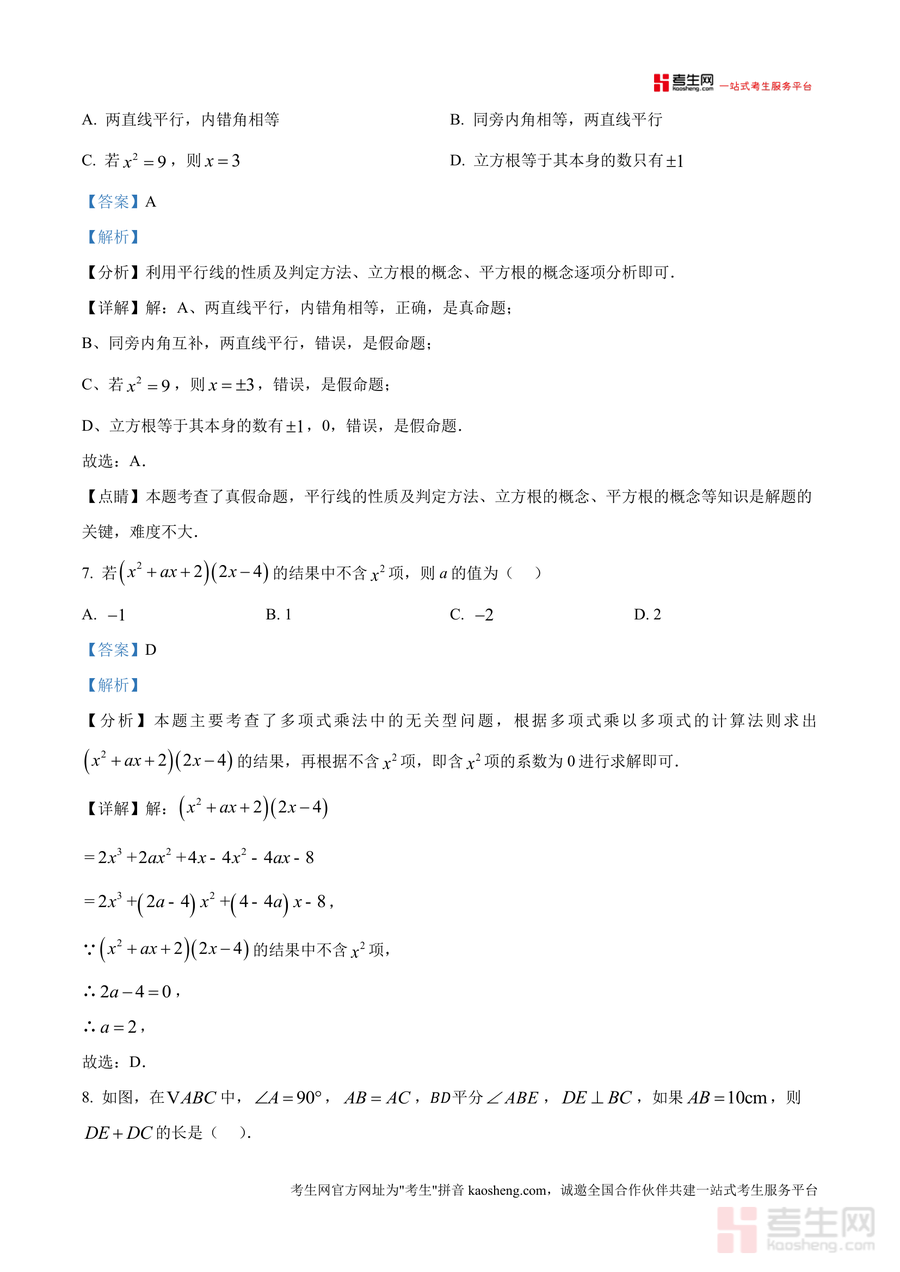 该资料可作为八年级学生期中备考核心工具,适用于课堂复习巩固、课后自主练习及考前冲刺训练场景。通过真题解析,学生能熟悉重庆七中命题风格与难度梯度,掌握应试能力提升技巧——如多项式无关项问题通过系数为零求解参数,几何证明题构建逻辑推理链条。此外,易错点总结(如平方根与算术平方根混淆)帮助规避失分陷阱,显著提高复习效率与答题准确率。
