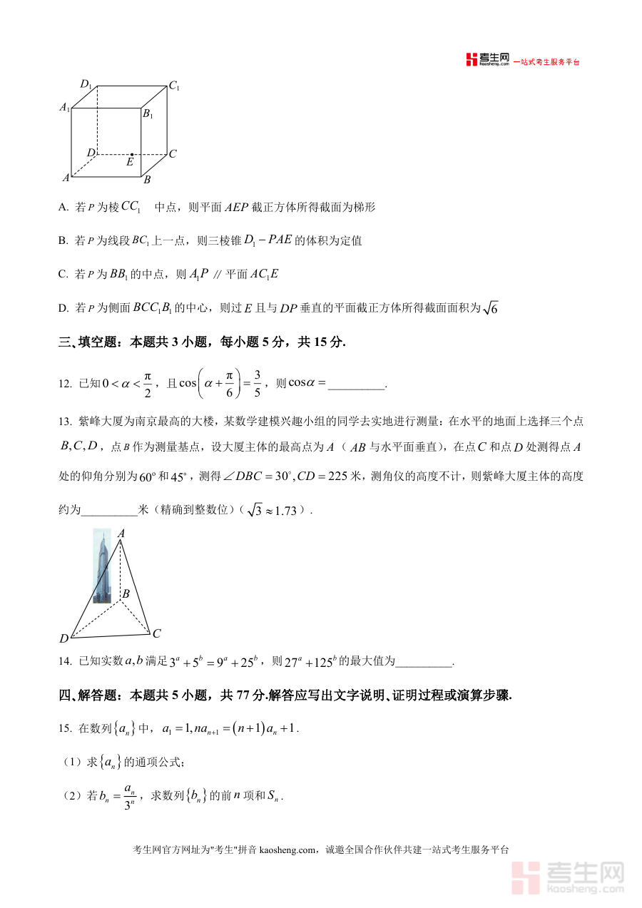 该资料核心用途为辅助高三学生开展高考数学备考训练以提升应试能力,适用场景涵盖课堂限时模考、课后自主刷题、教师备课选题及辅导机构模考组卷等;用户价值体现在通过原卷训练可熟悉高考答题规范与时间分配技巧,并精准识别知识薄弱模块进行针对性强化;备考优势在于试题命题逻辑贴近高考真题风格(虽然是原卷,但联盟模拟具有较强参考性)能有效帮助学生适应高考题型难度与考点分布特点。