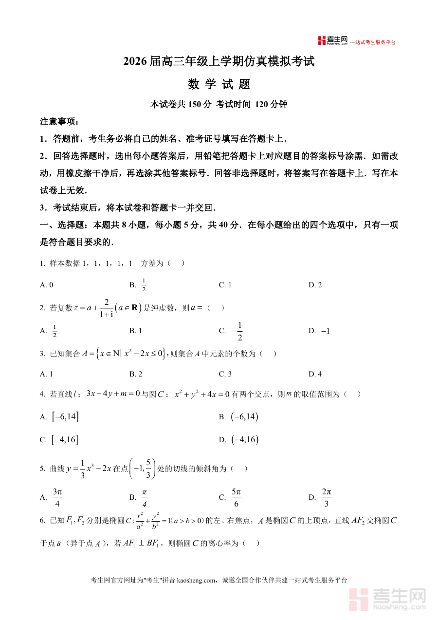 该资料适用于河北省唐县第一中学2026届高三学生、河北地区其他高三备考学生及高中数学教师。作为贴合本地命题方向的一模原卷资料,其不可替代性在于精准匹配区域考试难度与核心考点,长期价值体现在为后续二轮复习提供科学的数据支撑与复习方向指引,助力学生高效提升数学成绩,为高考备考奠定坚实基础。