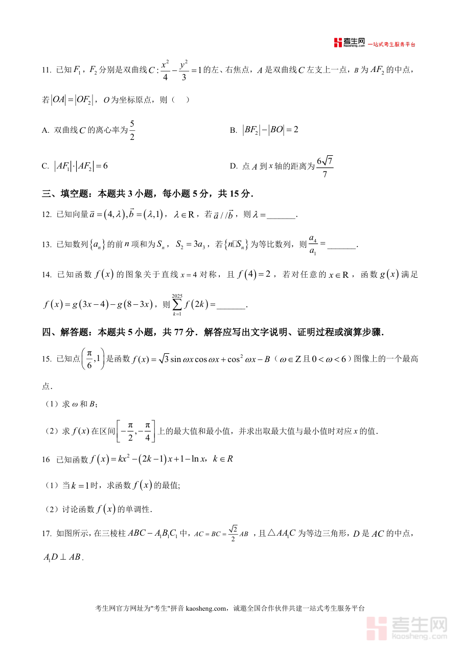 《精品解析:河北省唐县第一中学2026届高三一模数学试题(原卷版).docx》是一份面向河北省唐县第一中学2026届高三学生的高质量模拟备考资料。该资料严格遵循高考数学考试规范,包含选择题(8道)、多选题(3道)、填空题(3道)及解答题(5道)等完整题型结构,覆盖函数性质、立体几何、解析几何、概率统计等高中数学核心模块。其特色在于贴合河北地区高考命题趋势与本地学情,题目难度梯度合理且注重综合能力考查,能有效模拟一模考试的真实场景。