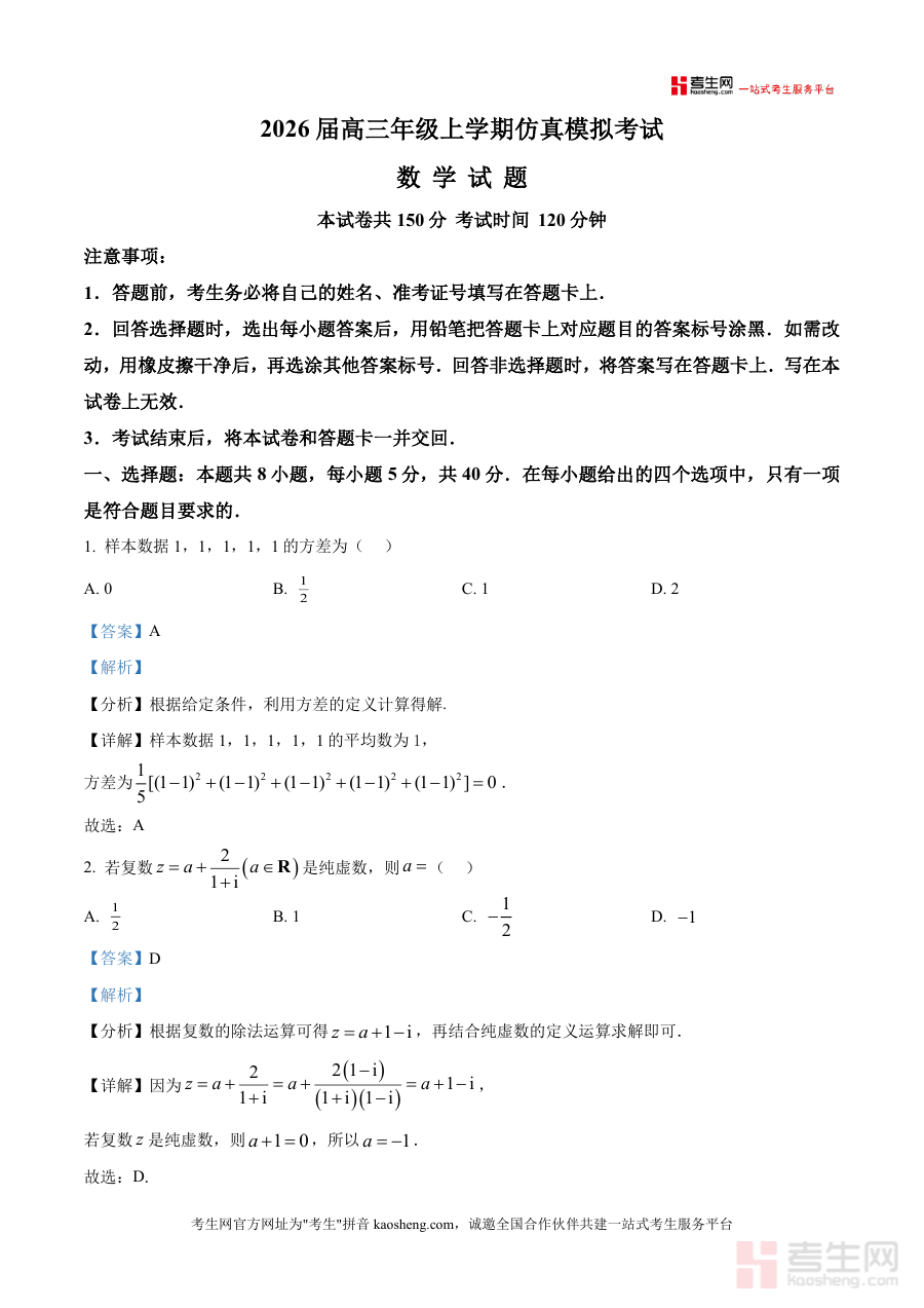 适用人群主要为2026届河北高三学生、高中数学教师及高考辅导教研人员。作为本地重点中学一模真题及专业解析,其不可替代性在于精准反映区域备考方向,长期价值体现在可作为全年复习核心参考,反复使用以巩固基础强化能力,是高考数学备考不可或缺优质资源。