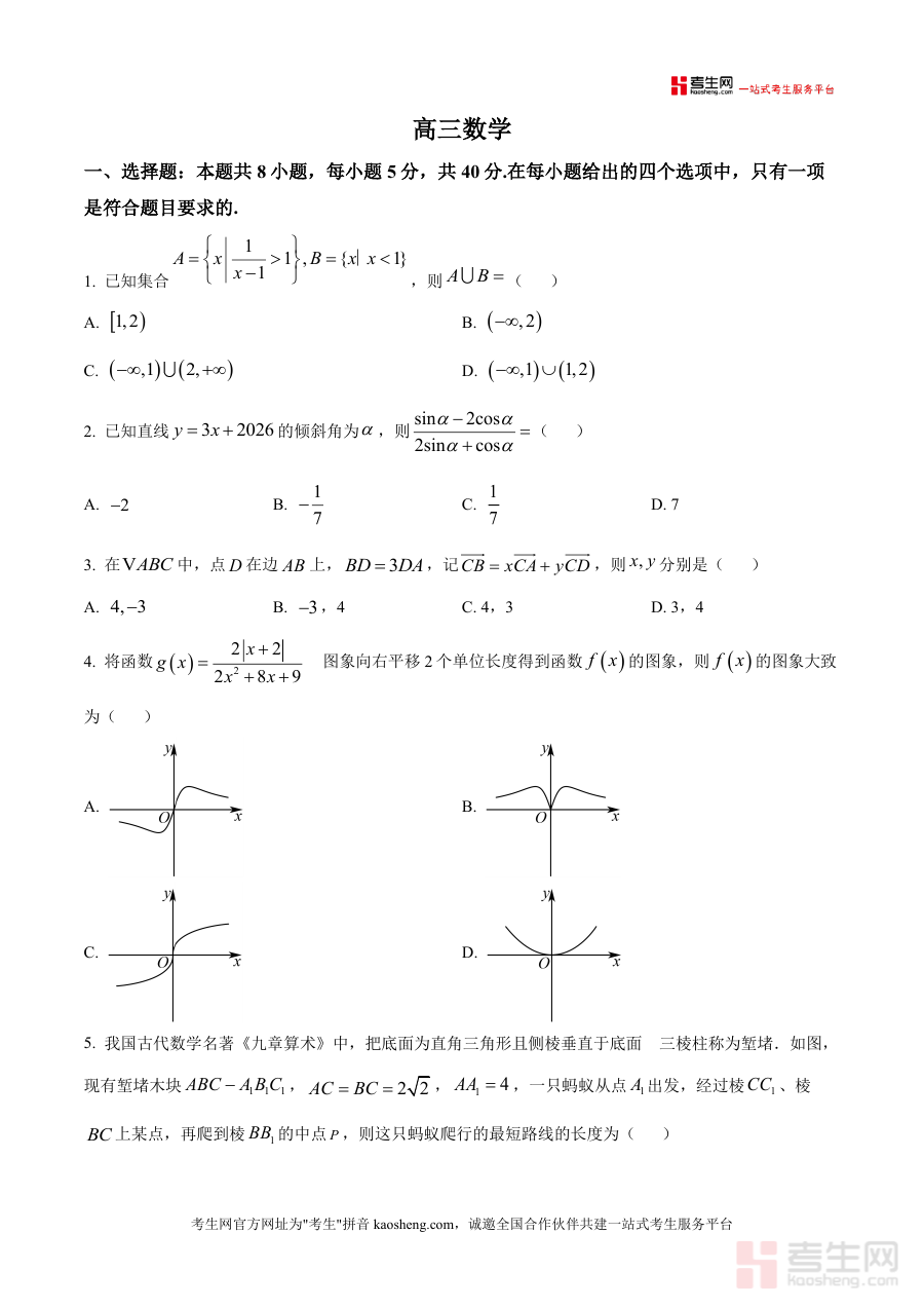 本资料适用于沧县中学2026届高三全体学生以及负责高三数学教学的教师群体。对于学生而言,它是备战一模考试不可或缺的练习材料;对于教师,则可作为教学评估与教学设计的重要参考依据。总结而言,这份原卷版试题具有不可替代性——其命题方向与难度完全匹配该校教学实际,远非通用教辅资料可比;长期来看,它能帮助学生构建更贴合自身学习情况的知识体系与应试策略,为后续高考复习奠定坚实基础。