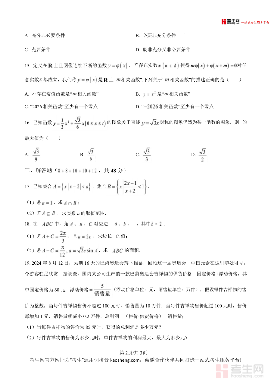 该资料核心用途为高一学生期末考前模拟训练,帮助学生熟悉考试题型与难度;教师可将其作为教学评估参考或试题资源库补充。使用场景包括学生自主刷题、班级集体模拟测试、教师针对性讲解等。用户价值在于通过练习掌握该校命题规律,提升应试能力;解答题中的实际应用题(如奥运会吉祥物利润计算)能锻炼学生知识迁移与解决实际问题能力,证明题则强化逻辑推理与数学思维深度。其备考优势在于原卷版的权威性与针对性,比普通模拟题更贴合该校学生实际考试需求。