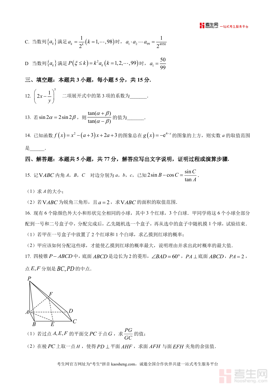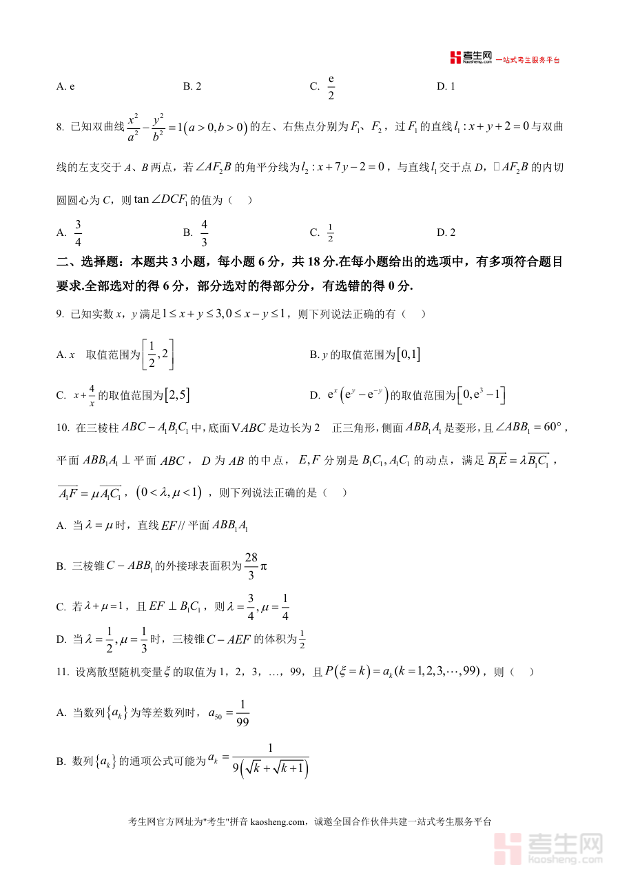 本资料适用于高三年级学生、高中数学教师及高考备考辅导机构人员。作为省级战略合作学校联合推出的联考原卷版试题,其具有不可替代的权威性与前瞻性,能精准反映当前高考命题方向,是高三数学备考过程中不可或缺的核心资料。其长期价值不仅限于当下复习阶段,更能为学生后续冲刺阶段的策略调整提供数据支撑,助力提升整体应试能力。
