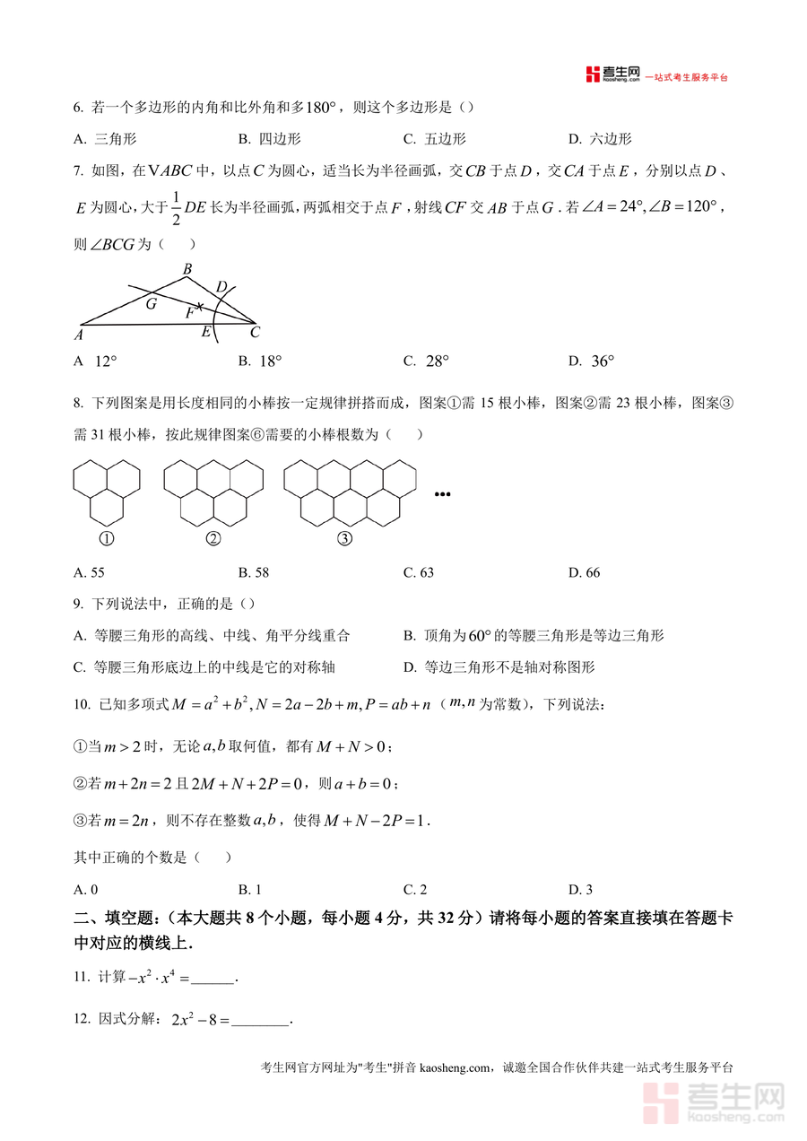 《精品解析:重庆育才中学教育集团2024-2025学年上学期八年级期中考试数学试题(原卷版)》是一份面向初二年级学生期中备考需求的权威真题资料。该资料完整呈现了重庆育才中学教育集团初二上学期期中数学考试原题风貌,包含A卷(满分120分)和B卷(满分30分)两部分结构;题型覆盖选择题(10题)、基础填空题(8题)、拓展填空题(3题)、常规解答题(5题)及综合解答题(2题);考点涉及轴对称图形判定、整式运算与因式分解、三角形性质与全等证明、几何作图与推理等核心知识模块。作为原卷版资料,其严格遵循考试时间(120分钟)与分值设置,保留了真题特有的难度梯度与命题风格,能让使用者精准把握区域重点校考试方向。