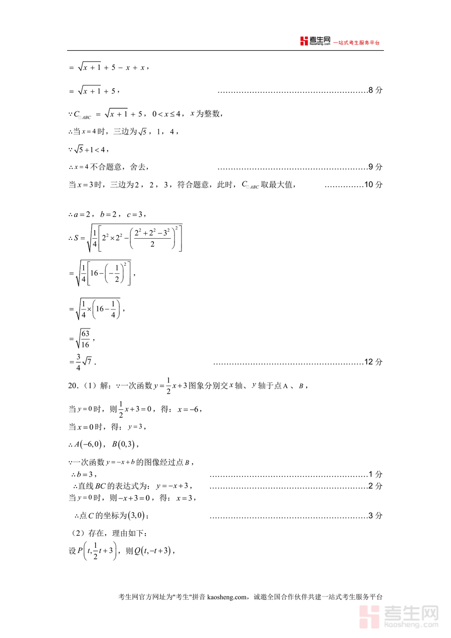 《2024年11月期中质量检测+初二数学参考答案(2).docx》是一份针对初二年级数学期中质量检测的权威参考资料。文件涵盖代数运算、几何证明、函数应用、勾股定理应用题等多种题型的详细解答,每个题目均标注得分要点与步骤说明。其特色亮点在于结合考试评分标准,清晰呈现解题逻辑链,例如几何题中从已知条件推导结论的每一步骤对应具体分值(如第15题分步骤给出2至7分评分依据);同时对复杂题型(如第20题等腰三角形存在性问题)提供分类讨论思路,帮助使用者理解多种解法可能性。