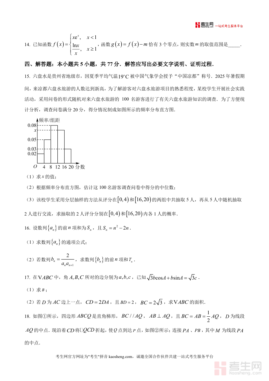 本资料适用于贵州省六盘水市水城区及周边区域高三学生、高中数学教师及备考辅导机构人员。作为区域性统考原卷资料,其不可替代性体现在精准贴合当地教学进度与命题风格,能有效填补通用资料与区域备考需求之间的差异;长期价值在于可作为高三全年备考的阶段性参考素材,持续辅助学生巩固核心知识点、优化解题策略,为高考冲刺奠定坚实基础,是高三数学备考过程中不可或缺的优质资源。