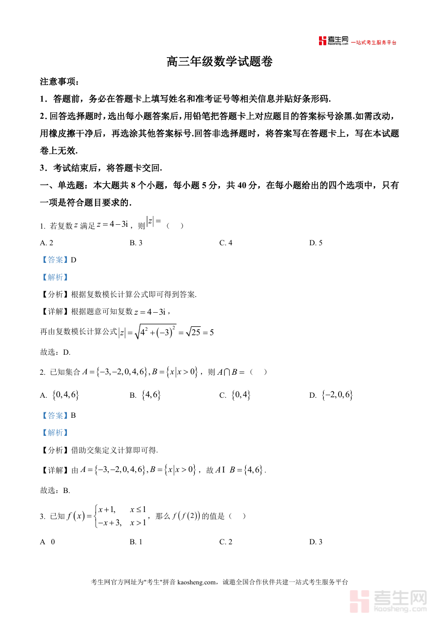 这份真题解析核心用途在于辅助高三学生进行针对性复习,通过对本地统考真题深度剖析提升应试能力;使用场景包括日常课后错题订正、阶段性复习中的真题演练、教师备课参考及个性化辅导材料。其用户价值体现在快速定位知识漏洞,掌握不同题型解题技巧;备考优势则在于贴合六盘水水城区统考命题趋势,聚焦高频考点,有效缩短复习路径,增强备考效率。
