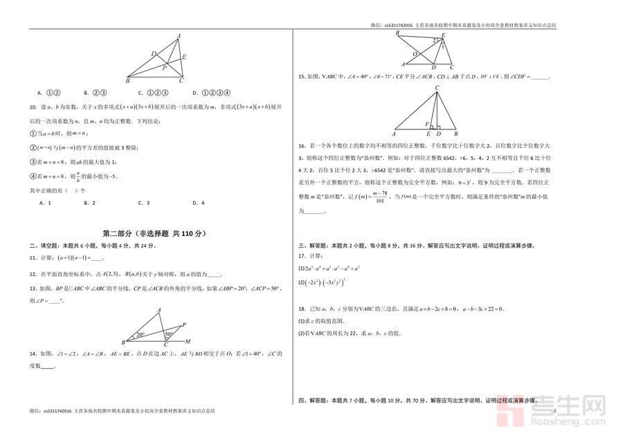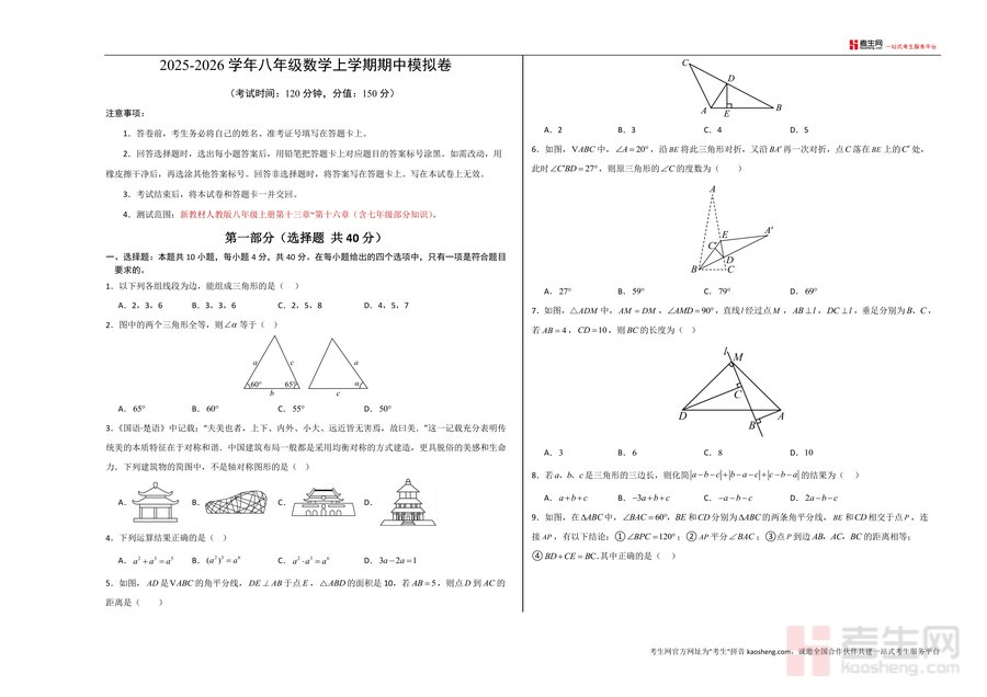 《八年级数学期中模拟卷【测试范围:新教材人教版八年级上册第十三章~第十六章(含七年级)】(考试版A3).docx》是一份针对人教版八年级上册期中复习设计的专业备考资料,覆盖第十三章至第十六章核心内容及七年级关联知识,题型包含选择题、填空题、解答题等完整考试模块,题目设计贴合教材重点与期中测试趋势,注重基础概念巩固与综合能力提升,能有效帮助学生熟悉期中测试结构、题型特点及评分标准。