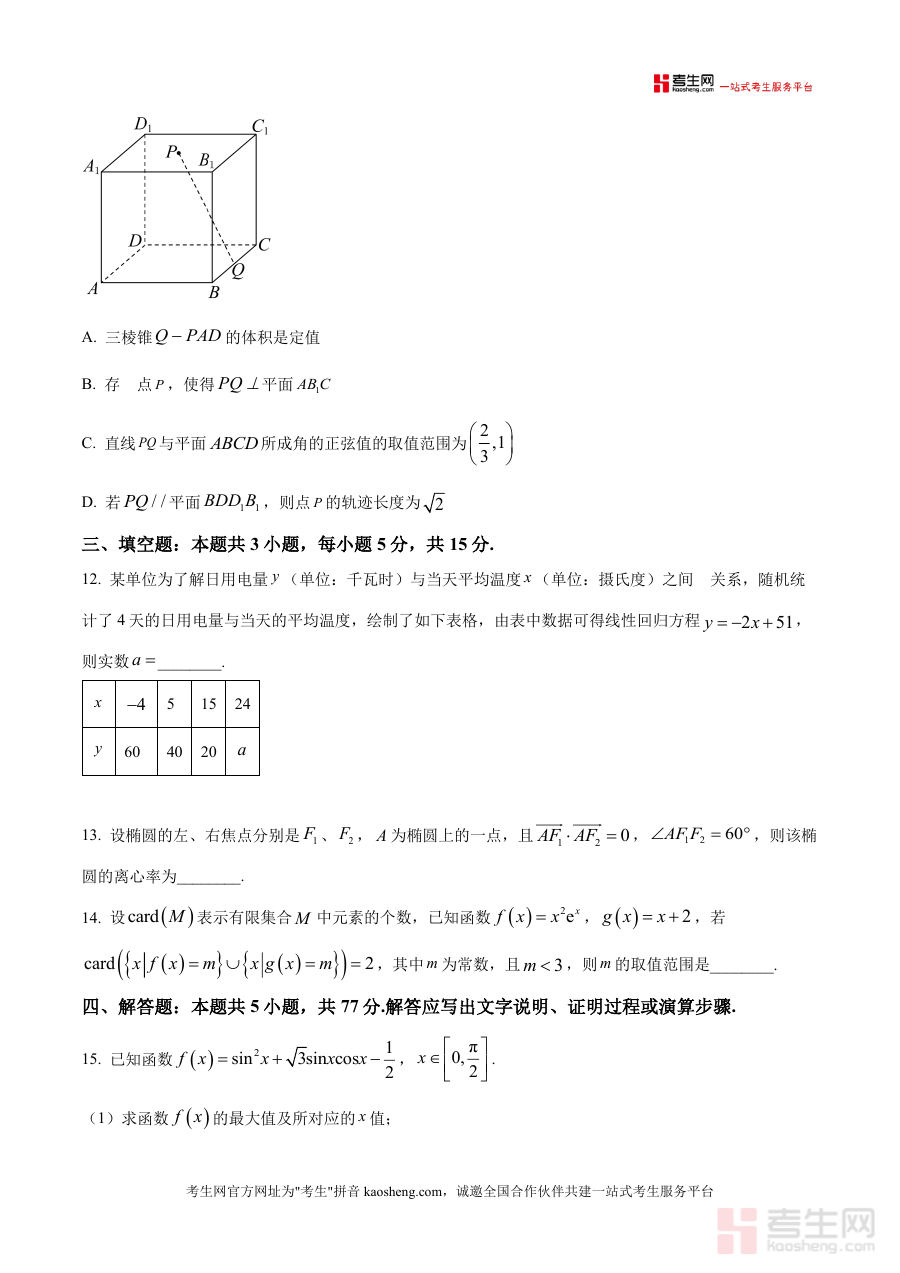 该资料核心用途为高三学生的模拟训练与复习效果检测。使用场景包括课堂限时测试(模拟真实考试时长120分钟)、自主学习中的自我评估、教师教学中的例题选取或作业布置等。对学生而言,通过完成该试卷可熟悉高考数学题型特点与难度梯度,提升应试能力中的时间管理能力与答题规范意识;对教师而言,则可借助试卷了解区域命题趋势,为教学调整提供参考依据。其备考优势在于原卷版未经过解析加工,能让学生独立完成思考与作答,更准确地反映自身知识漏洞与能力短板。