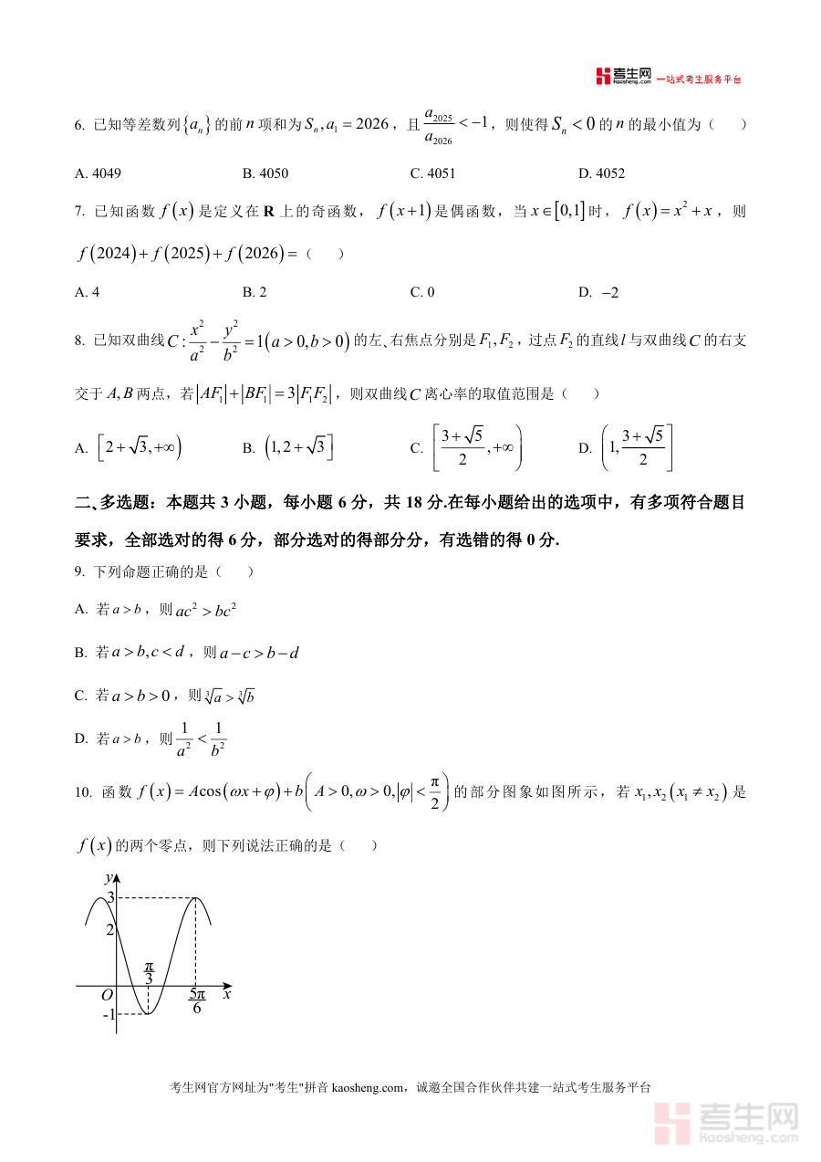 《精品解析:黑龙江省大庆市2026届高三第二次教学质量检测数学试题(原卷版)》是一份服务于大庆市高三学生数学备考需求的权威备考资料。该资料完整收录2026年1月大庆市第二次教学质量检测数学试题原卷,包含选择题(8小题)、多选题(3小题)、填空题(3小题)及解答题(5小题)四大题型模块,题型结构与高考完全一致,题目设置紧密结合本地教学进度与考情特征。其核心特色在于严格遵循高考命题趋势与区域教研标准,试题难度梯度科学合理,既覆盖函数、数列、立体几何、解析几何等核心知识点的基础考查,又融入对综合应用能力与创新思维的深度检验,为考生提供高度仿真的模考体验。