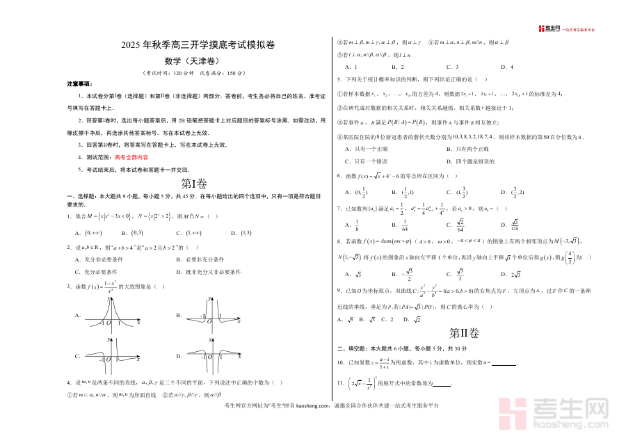 本资料适用于天津市全体高三学生、高中数学教师及高考辅导机构。作为秋季开学后的关键摸底工具,它不仅是学生查漏补缺、明确复习重点的重要依据,也是教师把握学情、优化教学策略的核心参考,具有不可替代性。长期来看,该资料可作为学生积累考试经验、构建知识网络的重要资源,助力其在高考数学科目中取得优异成绩。