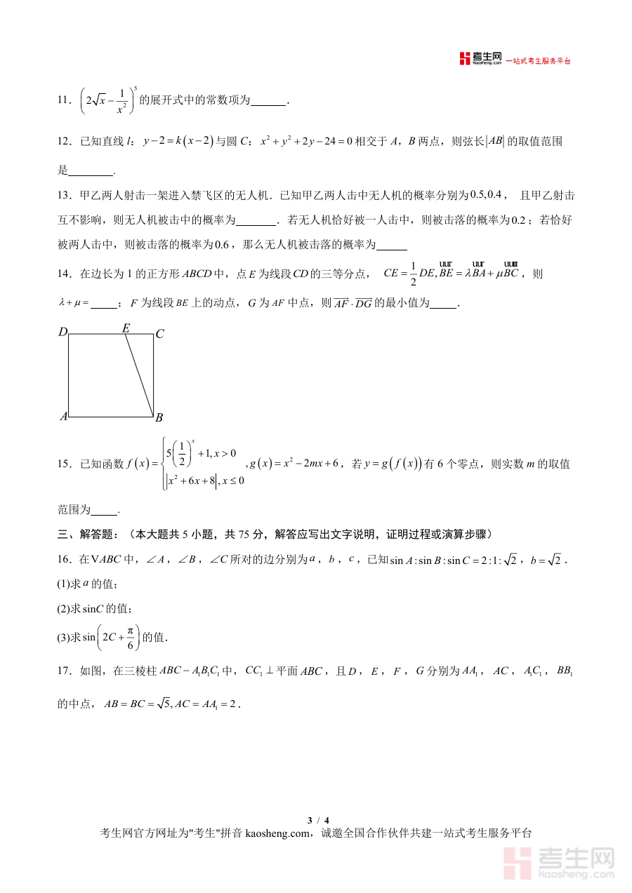《2025年高三数学秋季开学摸底考(天津专用)(考试版A4).docx》是一份针对天津市高三学生秋季开学设计的标准化高考数学模拟测试备考资料。该资料严格参照天津高考数学试卷结构与分值分布编制:第Ⅰ卷含9道选择题(共45分)、第Ⅱ卷含6道填空题(共30分)与5道解答题(共75分),测试范围覆盖高考全部知识点。其特色亮点在于贴合天津本地命题趋势——如解答题中立体几何、椭圆方程、数列综合、导数应用等题型均为天津卷高频考点,并附带规范考试注意事项(如答题卡填写要求、答题规范说明),可模拟真实考场环境帮助使用者提前适应考试流程。