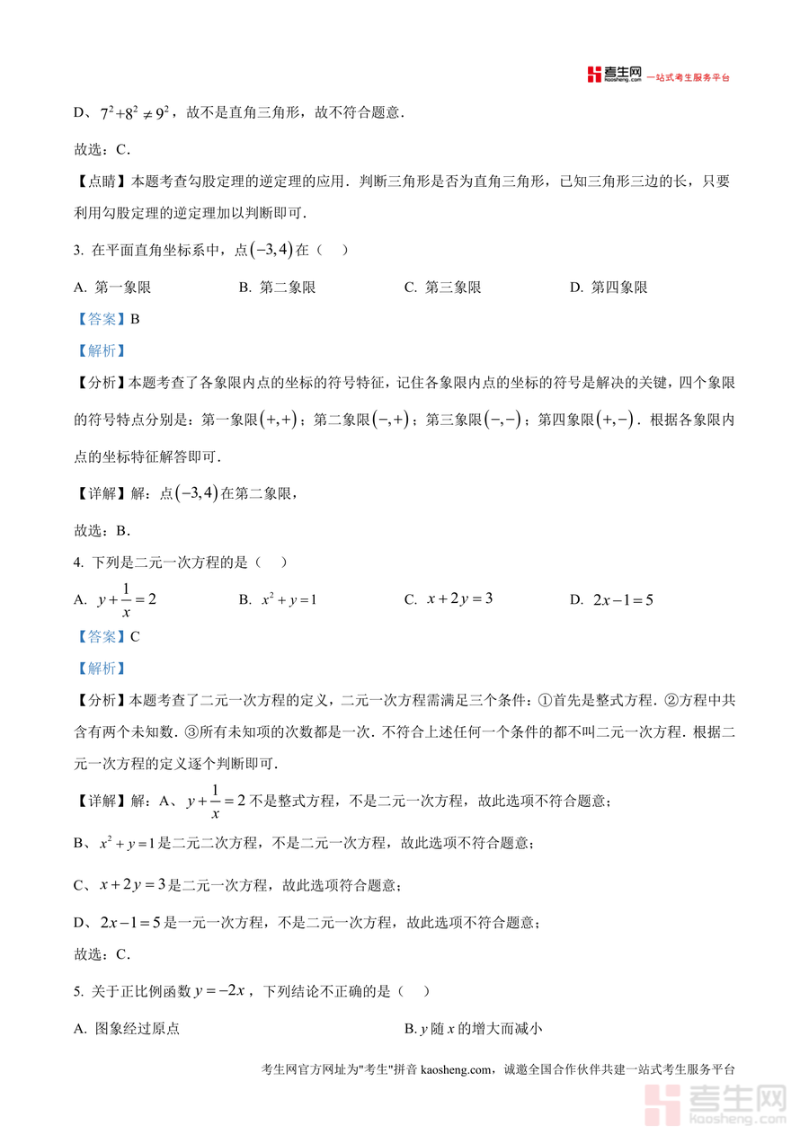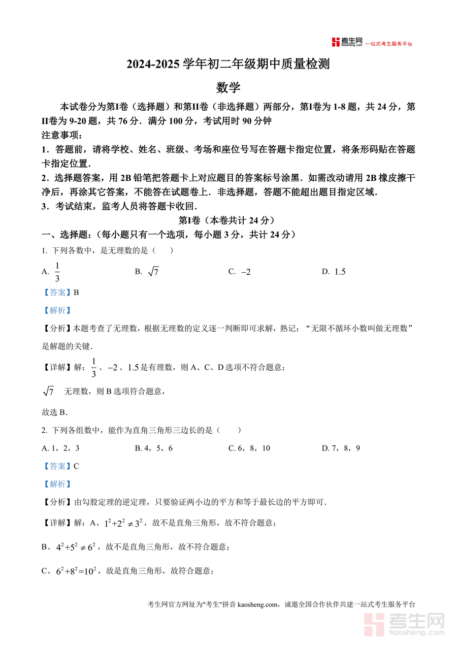 《精品解析:广东省深圳市福田区实验教育集团侨香学校2024-2025学年八年级上学期期中考试数学试卷(解析版).docx》是一份针对该校八年级上学期期中数学考试设计的权威真题解析资料,核心内容涵盖试卷结构分析、各题型逐题精讲及考点深度解读。资料包含选择题、填空题及解答题等全题型解析,覆盖无理数判断、勾股定理应用、一次函数图像性质、二元一次方程组求解等八年级上册数学核心模块;特色亮点在于每道题均配备详细思路分析、易错点标注及解题技巧总结,并融入教材对应知识点链接,帮助学生从本质理解考点应用。