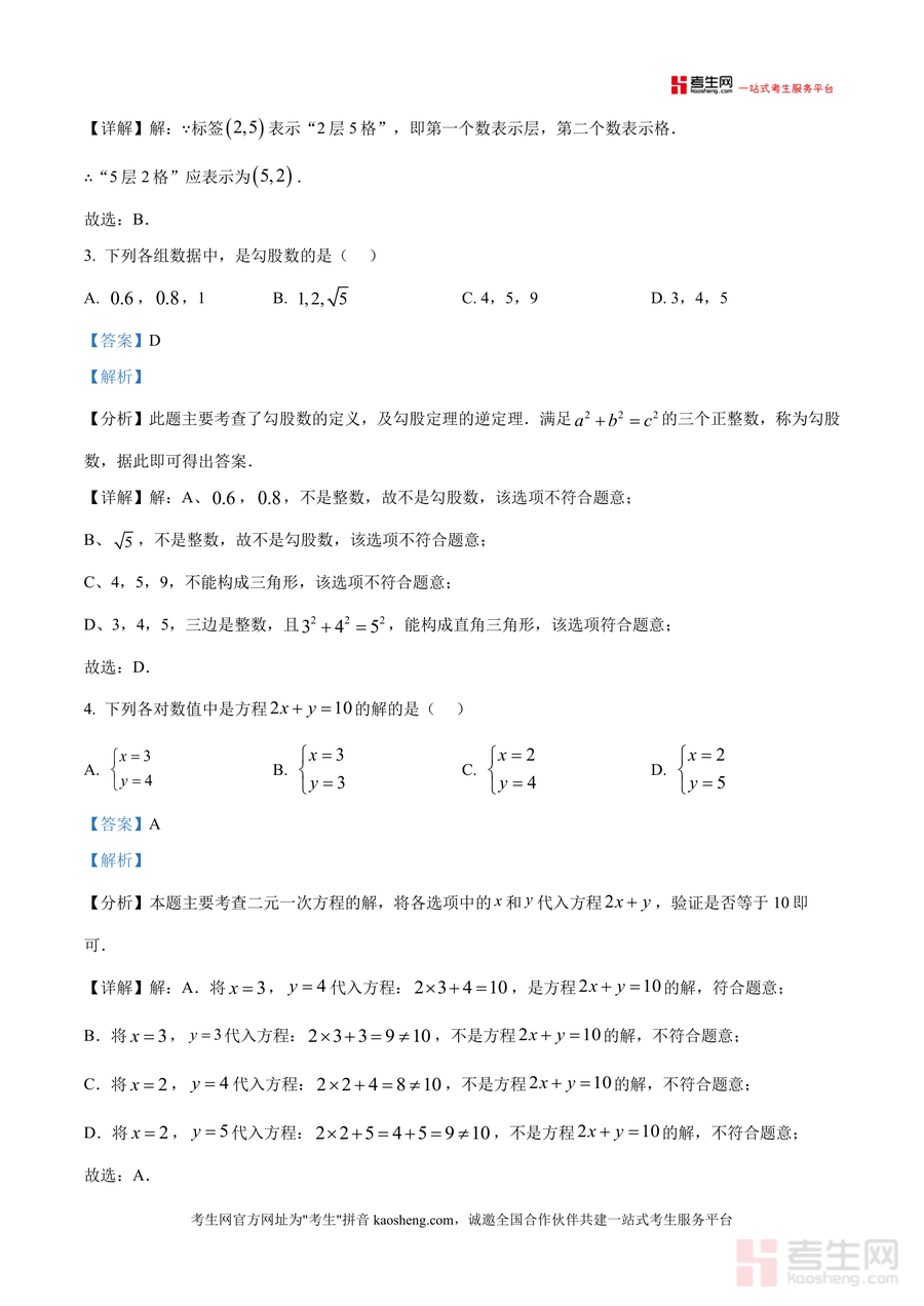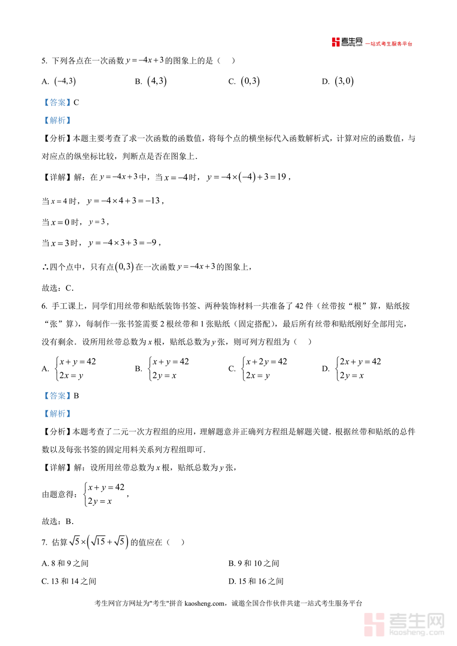 该资料核心用途在于助力学生提升应试能力与数学思维水平:日常复习时可用于巩固实数、坐标系、二元一次方程组等核心模块知识;考前冲刺阶段能帮助学生熟悉考试题型分布与难度梯度;错题复盘时可通过解析明确错误原因并掌握正确解题策略。使用场景覆盖课堂练习后的拓展巩固、家庭作业中的疑难解答及模拟测试后的查漏补缺;用户价值体现在精准对接考试需求,帮助学生高效突破薄弱环节;备考优势在于其真题来源的权威性与解析内容针对性,有效缩短备考时间并提升复习效率。