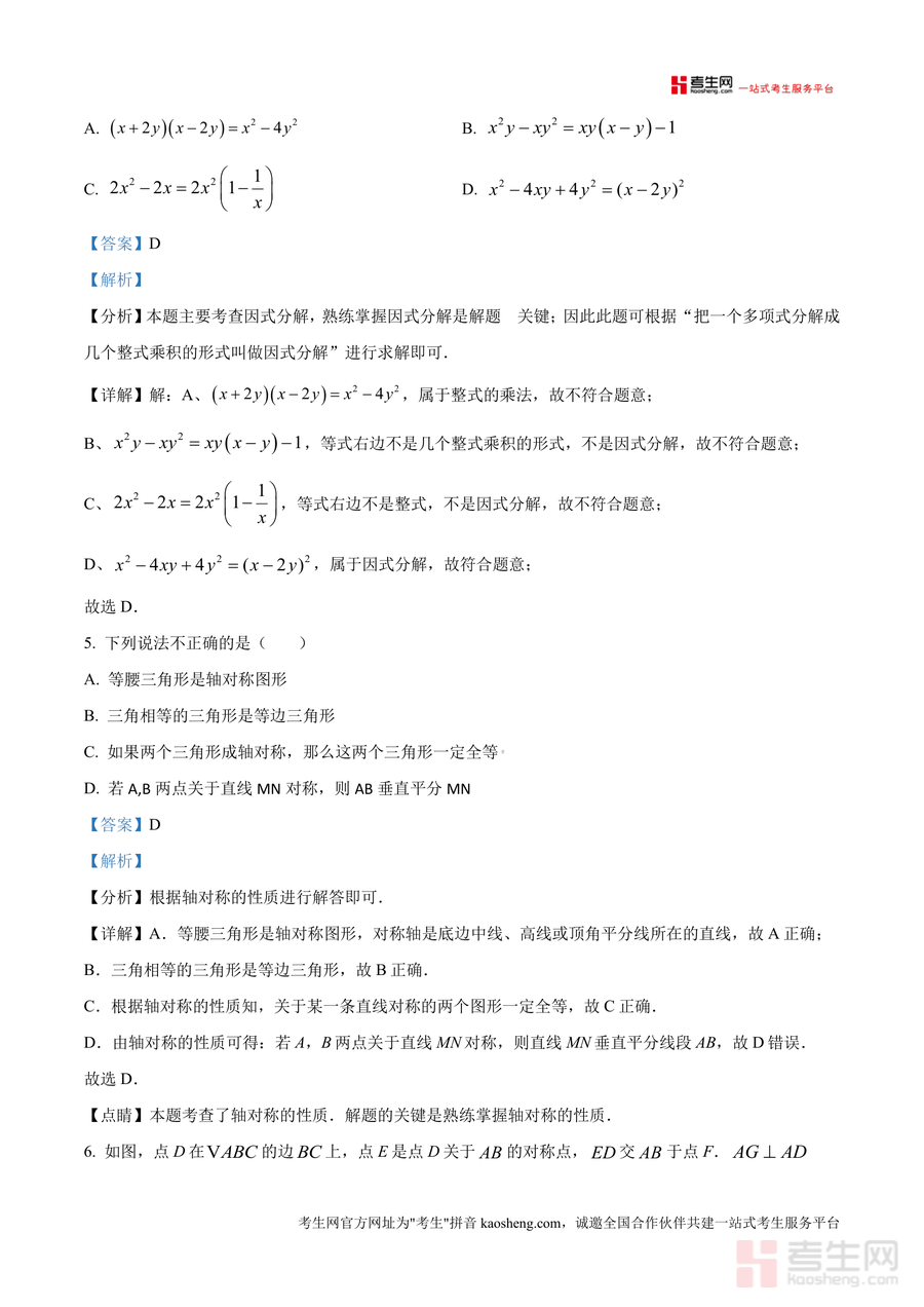 该资料核心用途覆盖多场景:学生可借助它进行期中备考自查,通过真题解析巩固轴对称、整式运算、全等三角形等关键知识,提升应试能力;教师能将其用于课堂讲评或针对性教学设计,利用解析中的考点分布与易错点分析调整教学策略;家长可辅助孩子梳理知识漏洞,通过解析中的步骤拆解引导孩子掌握规范解题方法。其备考优势显著:真题来源权威,能真实反映区域期中命题趋势;解析详实专业,帮助使用者高效突破薄弱环节,实现学习效果快速提升。