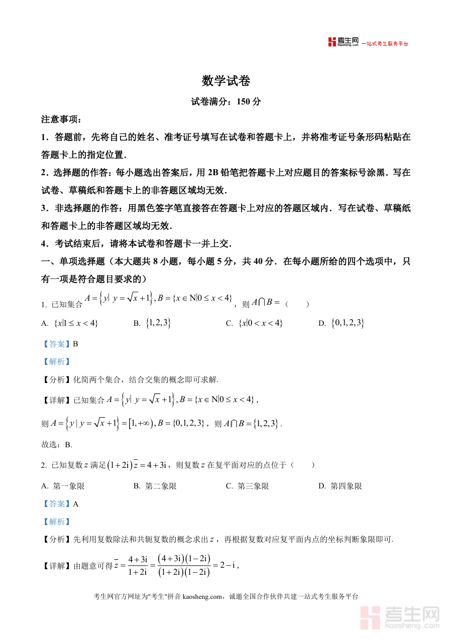 《精品解析:湖北省腾云联盟2026届高三上学期开学考试数学试卷(解析版)docx》是一份针对高三学生数学学科备考需求的优质真题解析资料。该资料涵盖试卷全题型解析,包括单项选择题、多项选择题、填空题及解答题四大模块,每个题目均配备详细分析、解题步骤及考点标注,特色在于结合腾云联盟考试命题特点,突出核心考点与解题技巧,帮助学生精准把握题型规律与应试方向,是兼具实用性与指导性备考资料。