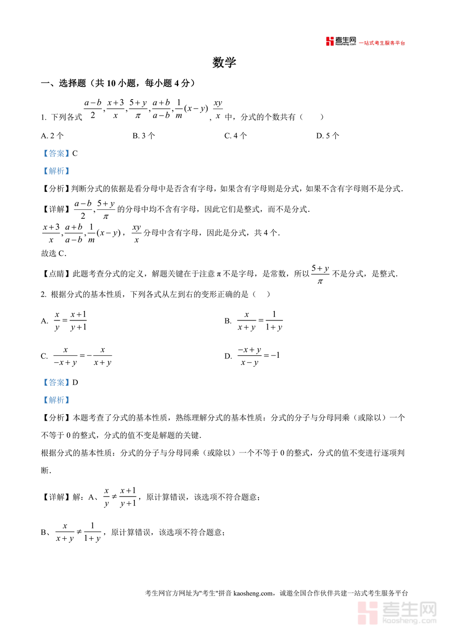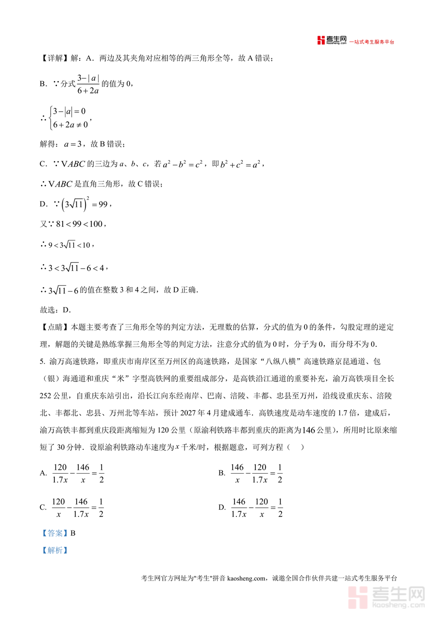 《精品解析:重庆市万州中学2024-2025学年八年级下学期第一次定时作业数学试题(解析版).docx》是一份针对万州中学八年级下学期数学阶段性检测的专业真题解析备考资料。文件涵盖选择题、填空题、解答题全题型内容,对每道试题均提供详细分析、规范解答及易错点点睛,覆盖分式定义与性质、函数自变量取值范围、全等三角形判定等八年级下册核心知识点。其特色亮点在于结合该校教学实际,注重解题方法提炼与逻辑思维引导,如对分式方程增根问题、函数图像应用等高频考点进行深度剖析,帮助学生理解考点本质。