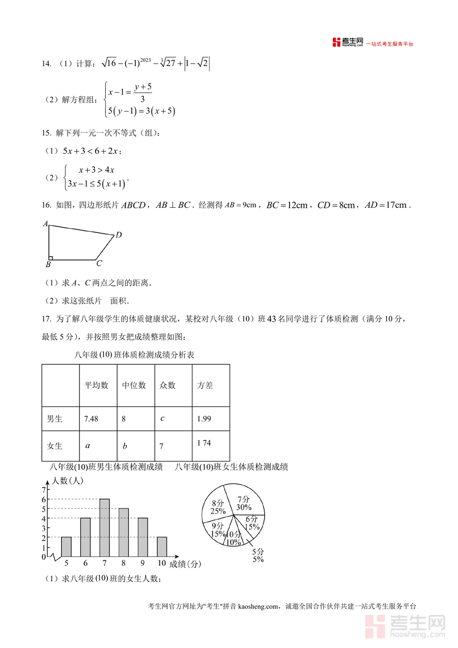 这份试卷的核心用途在于帮助学生进行开学前自测评估与知识巩固,适用于学生寒假自主复习后的模拟考试场景,也可作为教师备课参考或家长辅助孩子查缺补漏的工具。通过完成该试卷,学生能熟悉开学考的题型结构与难度梯度,提前适应考试节奏,精准定位不等式应用、几何计算等薄弱环节;其作为本地重点校真题资源的属性,能让学生接触到贴合本地教学进度的命题思路,有效提升应试能力与解题技巧。