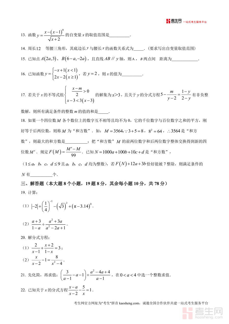 该资料核心用途为辅助学生进行月考真题训练与知识巩固,使用场景涵盖学生自主刷题提升应试能力、教师课堂讲评或作业布置、家长引导孩子针对性查漏补缺;其用户价值在于帮助学生熟悉月考题型结构与难度梯度,快速定位分式运算、函数应用等薄弱环节;备考优势体现在依托本地名校真实月考资源,能让学生提前适应考试节奏与命题风格,通过系统训练强化解题思路与答题规范,有效提升数学应试水平与解题效率。