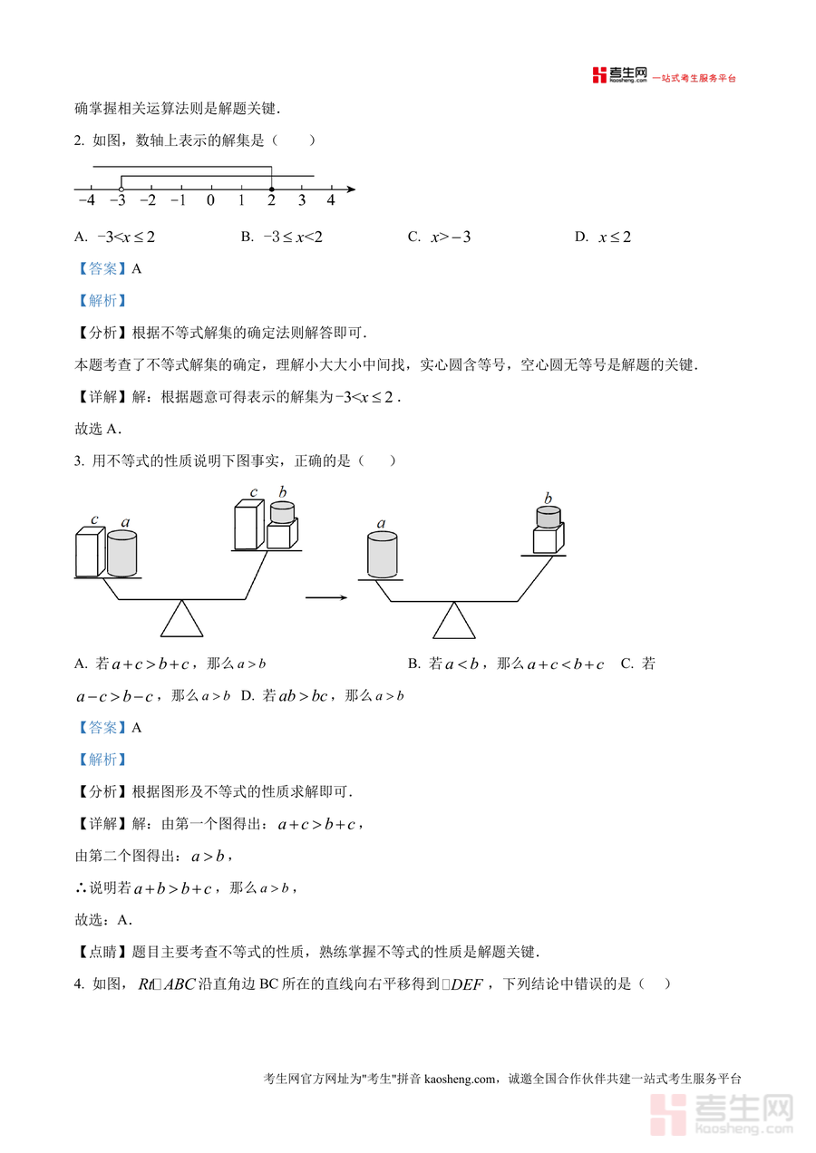 《精品解析:广东省深圳市2024-2025学年北师大版八年级下册3月检测试卷(解析版).docx》是一份针对深圳地区八年级学生北师大版数学教材设计阶段性检测解析资料,聚焦第二学期3月学情调研核心内容。该资料完整呈现试卷结构,包含8道选择题、5道填空题及7道解答题三大模块,覆盖合并同类项、不等式解集确定、平移性质等核心知识点;每道题附深度解析,含考点分析、详细解题步骤及点睛提示(如反证法应用、角平分线性质技巧),贴合深圳本地学情与教材同步性,注重方法引导而非单纯答案呈现。