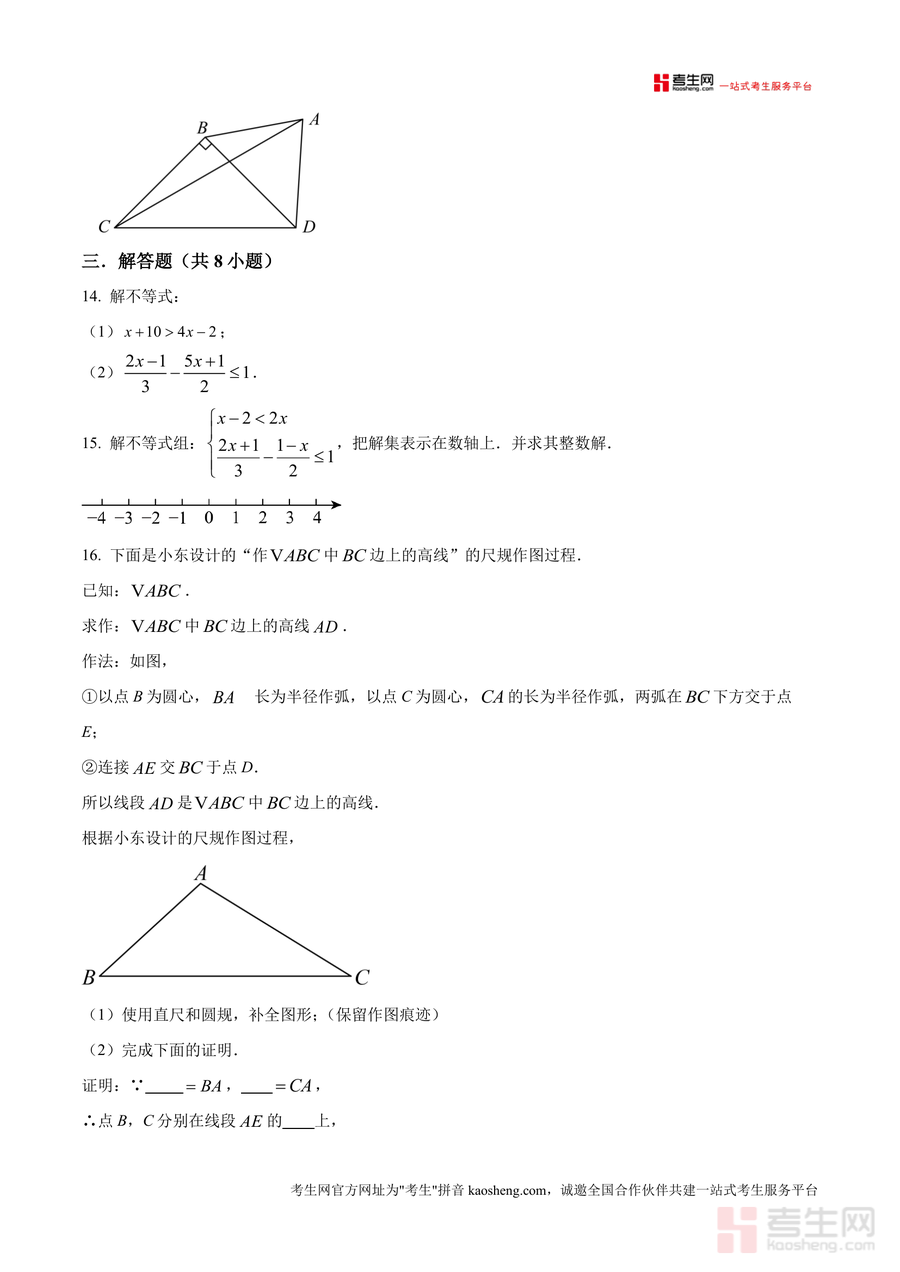 本资料适用于深圳市罗湖区罗湖实验学校八年级学生,以及周边同年级、备考目标一致的初中数学学习者。作为该校月考专属练习资源,它具有不可替代性——既能帮助学生提前适应本校月考节奏,又能巩固不等式、几何图形等核心知识点,为期中及期末备考奠定坚实基础。长期来看,其对学生数学思维与解题能力的培养具有持续价值,是八年级数学备考阶段不可或缺的重要工具。