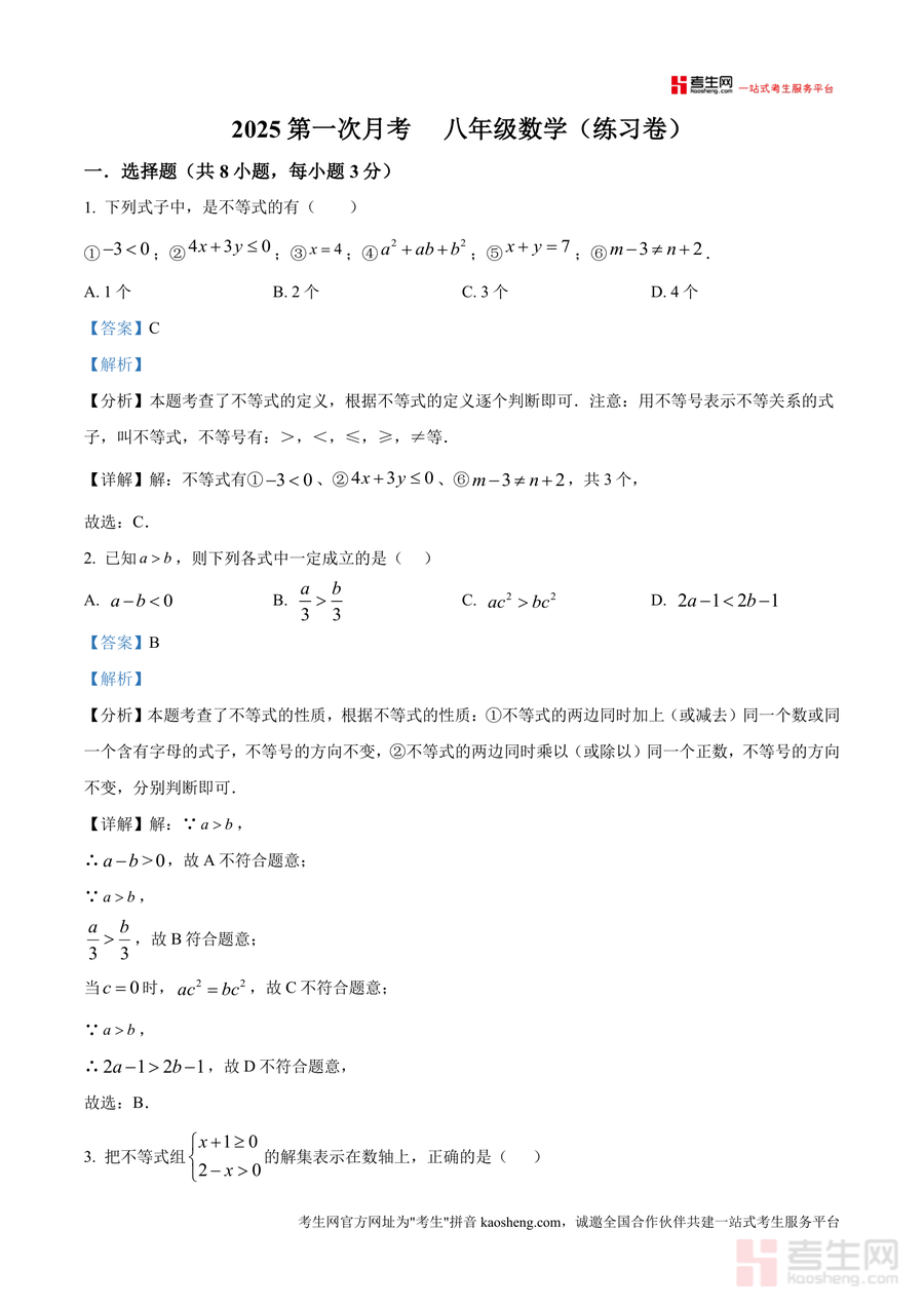 该资料适用于日常课堂练习、课后巩固复习及考前冲刺训练场景。学生可通过针对性刷题巩固各模块知识点,提升解题技巧与速度;教师可将其作为教学参考资料,辅助设计课堂习题或单元测试。其备考优势在于聚焦高频考点与易错题型,通过清晰解析帮助学生快速定位错误原因、弥补知识漏洞,有效提升应试能力,为考试取得优异成绩提供有力支持。