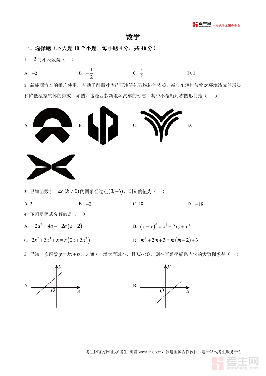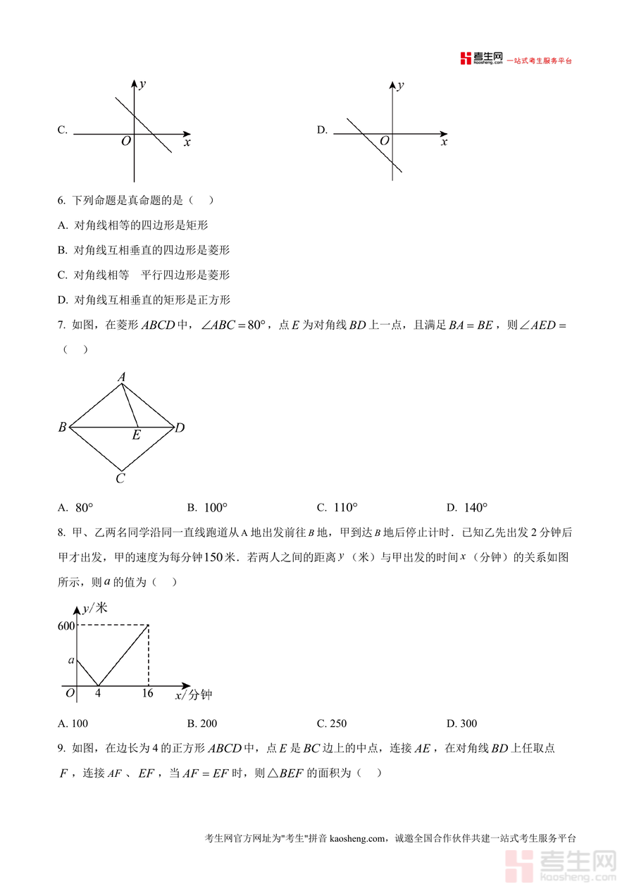 《精品解析:重庆市鲁能巴蜀中学2024-2025学年八年级下学期第一次月考数学试题(原卷版).docx》是一份聚焦该校八年级下学期首次月考的数学真题资料,完整收录本次考试的全部原题内容。资料包含10道选择题(覆盖相反数、轴对称图形识别、一次函数增减性与图像判断等)、8道填空题(涉及函数自变量范围、科学记数法、几何角度计算等)以及9道解答题(涵盖因式分解、几何证明<菱形性质>、应用题<经济、行程>等)三大题型,全面覆盖八年级下册数学核心知识点。作为原卷版备考资料,其亮点在于严格遵循该校命题逻辑,真实还原月考难度与考点分布,为学生提供高质量的真题训练载体。
