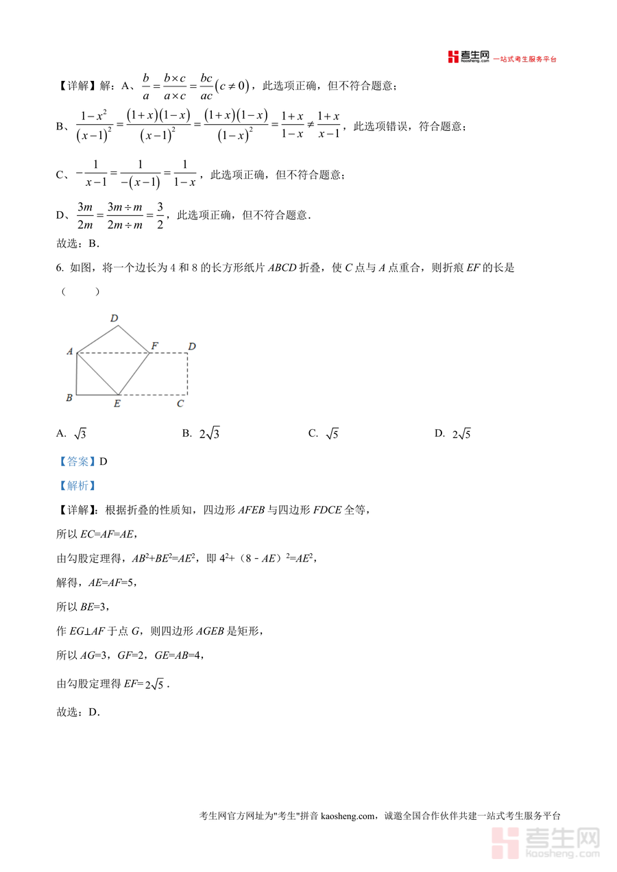 《精品解析:广东省深圳实验学校中学部2024-2025学年八年级下学期期中数学试题(解析版).docx》是一份针对该校八年级学生期中数学备考及能力提升设计的专业真题解析资料。文件包含完整考试原题及单选题、填空题、解答题等全题型详细解析,覆盖勾股定理逆定理应用、不等式性质判断、因式分解方法、平行四边形与菱形性质等核心知识点。解析部分突出考点分析与解题思路引导——如折叠问题中几何变换应用讲解、分式方程求解步骤拆解等,帮助学生精准把握题目本质与得分要点,属于高质量真题解析类备考资料。