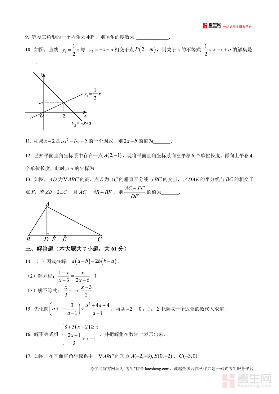 适用人群涵盖深圳市南山实验教育集团麒麟中学八年级在读学生、备考同类学校期中数学的初中二年级学生,以及初中数学教师与教研人员。该文件作为该校期中数学试题的原卷版,具有不可替代性,能帮助学生提前适应考试节奏,查漏补缺;其长期价值在于积累符合本地命题风格的解题经验,为后续八年级下册期末复习及九年级数学学习奠定坚实基础,是提升数学成绩不可或缺的备考资料。
