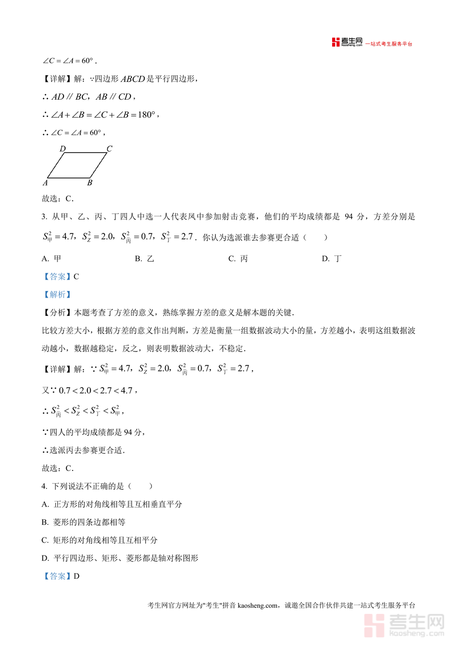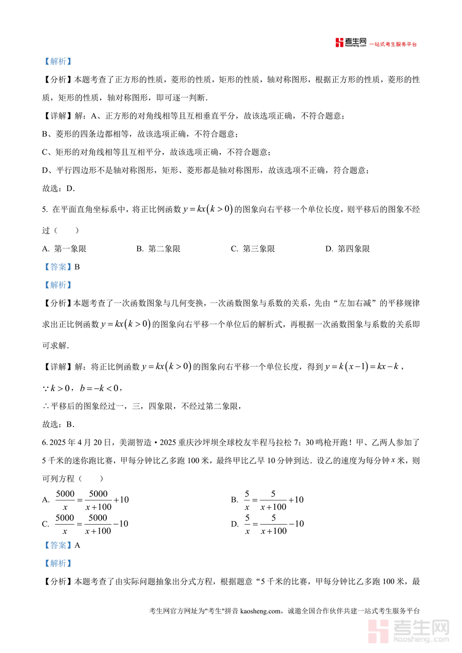 《精品解析:重庆市凤鸣山中学教共体2024—2025学年八年级下学期期中考试数学试题(解析版).docx》是一份聚焦重庆本地教共体教学标准、服务八年级数学期中备考的松崖专业真题解析资料。该资料包含完整试题及逐题深度解析,覆盖选择题(如坐标象限判断、平行四边形性质)、填空题(如科学记数法、矩形对角线计算)等核心题型;解析内容不仅呈现正确答案及详细解题步骤,还标注考点归属与命题意图,并延伸同类考点解题方法,助力使用者精准把握考点方向。其特色在于结合教共体教学实际设计解析框架,确保内容贴合本地学情,为备考提供全面支撑。