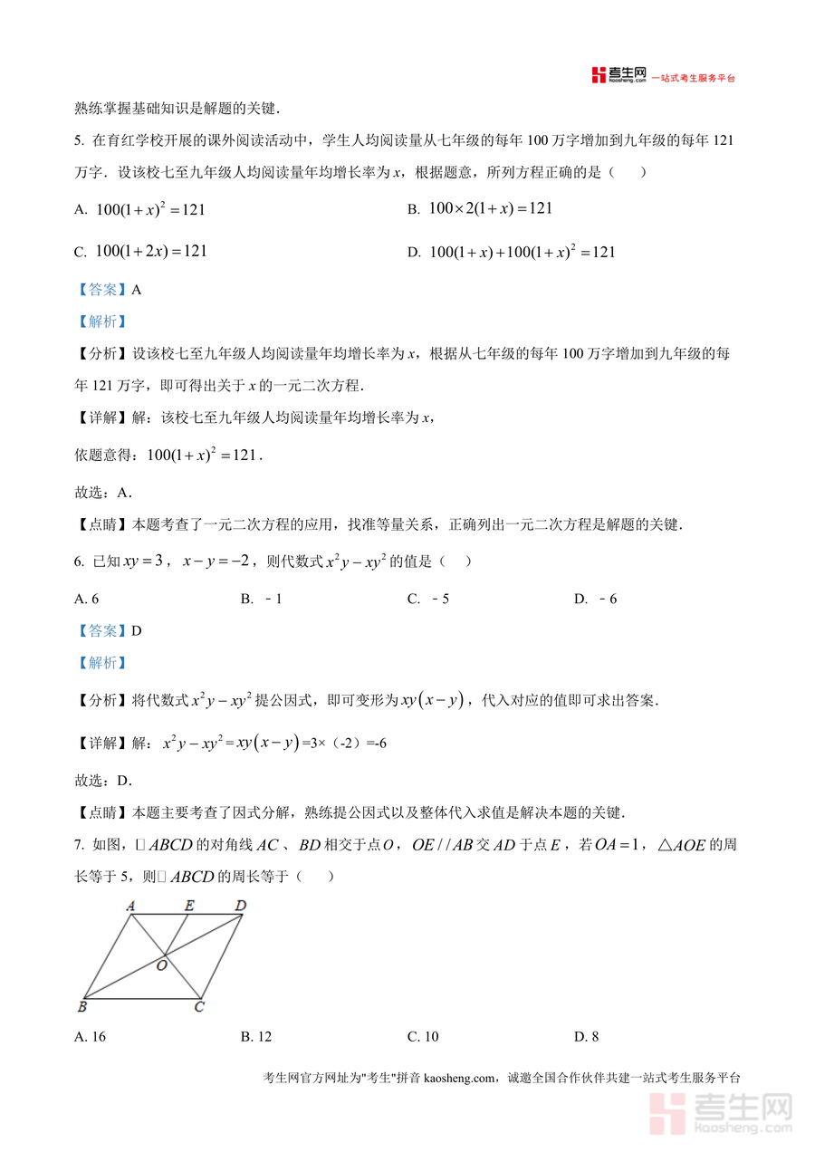 该资料核心用途涵盖学生自主复习、教师备课参考及家长辅导辅助三大场景。学生可通过逐题解析自查知识点掌握情况,针对错题溯源补漏;教师能借助解析中的考点分布与题型设计思路优化教学方案;家长可依据易错点提示精准指导孩子复习。备考优势上,它能帮助使用者快速把握深外期中命题规律,明确重点题型(如平行四边形综合题、一元二次方程应用)与分值占比,通过真题解析训练提升应试能力,避免盲目刷题,提高复习效率。