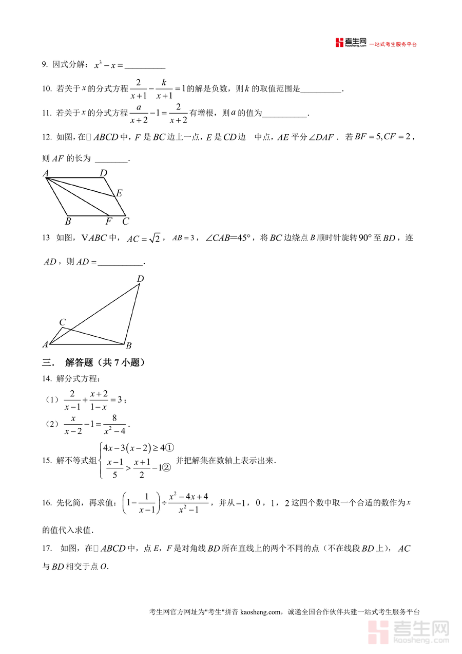 该资料核心用途为帮助学生熟悉期中测试题型结构与考点分布规律,使用场景涵盖日常课后练习、考前模拟训练及知识点查漏补缺环节;用户价值体现在通过真题训练提升应试能力,掌握针对性解题技巧,例如分式方程解法、不等式组求解及几何综合题思路构建等;备考优势在于精准匹配该校教学体系与期中考查方向,让学生提前适应考试节奏与命题特点,有效降低考试陌生感并提升答题效率。